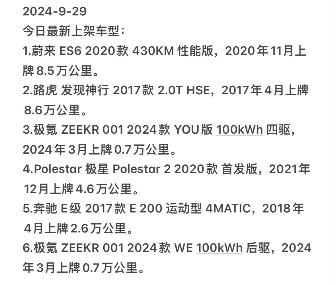 2024.9.29。今日最新上架车型,欢迎各位老板私信了解。
