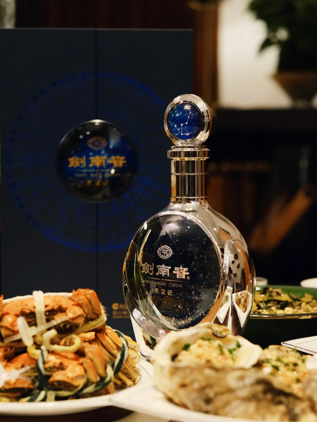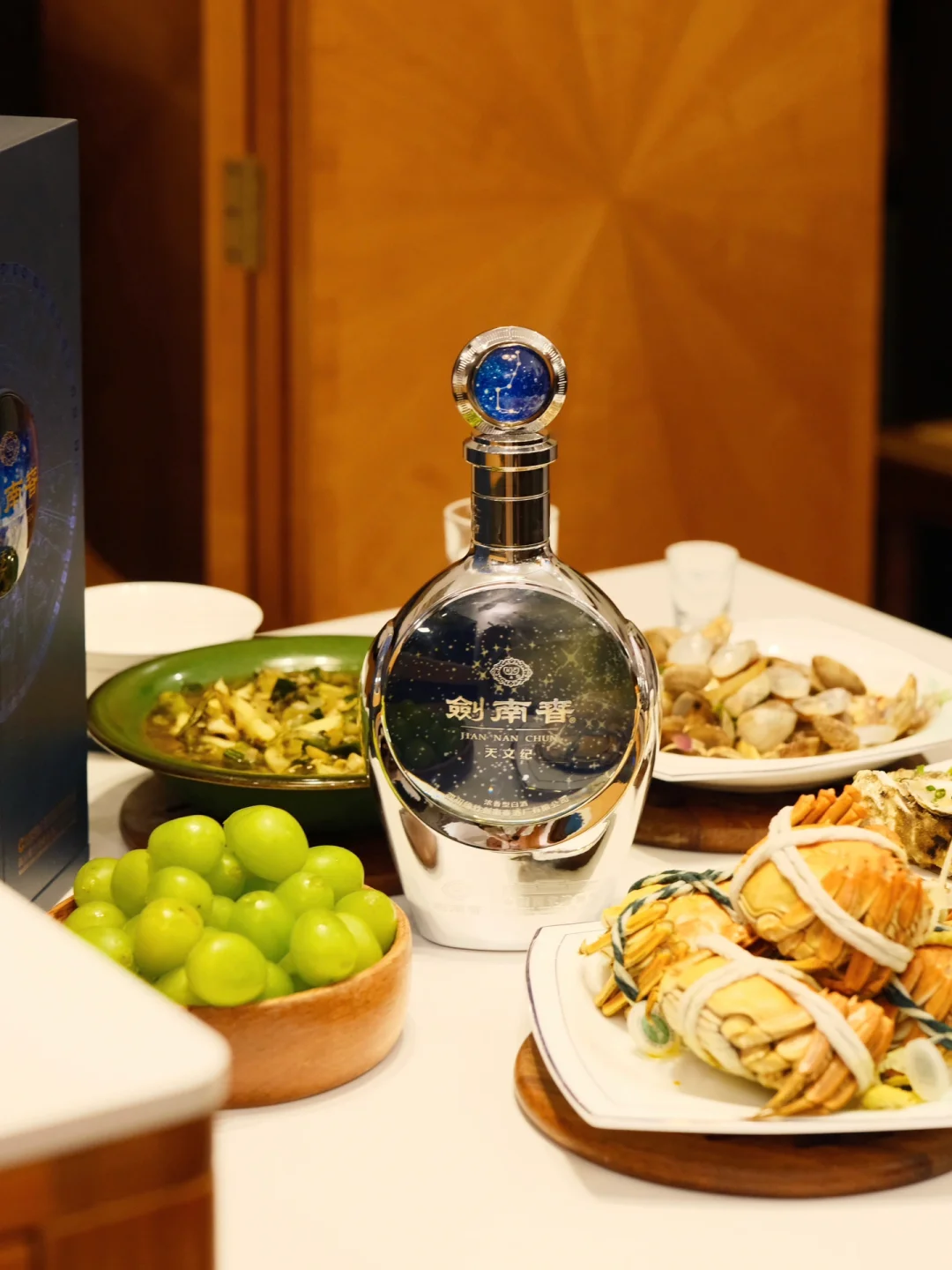 朋友说这是剑南春与国博合作的首款联名产品,是从国博众多文物中选择了《宋·“天文图”碑拓片》为灵感,在基础上进行了艺术加工,以现代审美和工艺,呈现一片浪漫与壮观的星河,研发了剑南春·天文纪。取意天圆地方,展现古人天人合一的宇宙观。让我这个爱酒人从美酒中学习到了天文学知识哈哈。