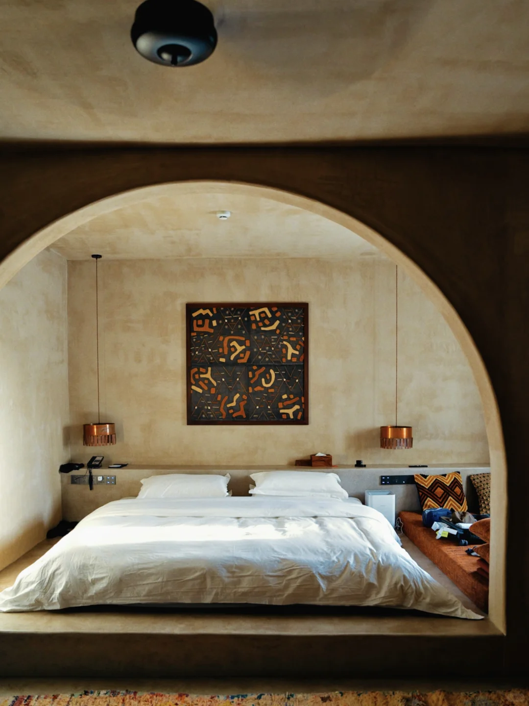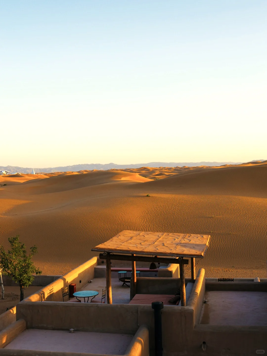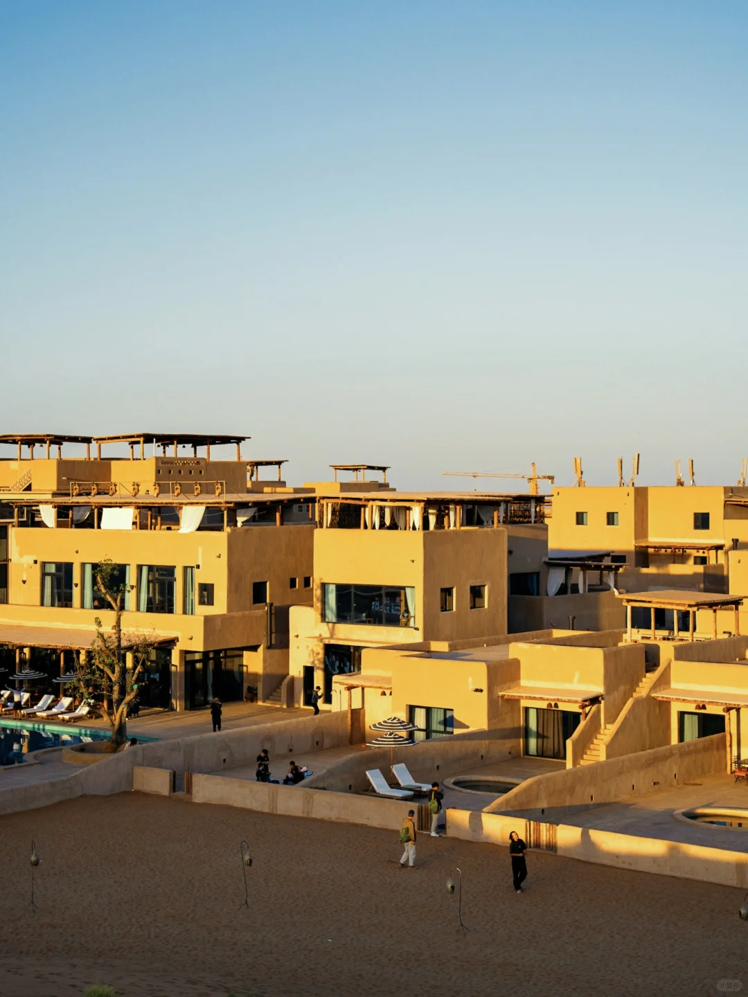 这次带我们一行人入住Tengol 沙漠度假酒店,很多人说这是2024年最直得期待的酒店之一,酒店是中东家楼兰风格,竖立于一片沙漠之中,让人有种处于古代商队在绿洲休息的错觉,房间朴素、但是采用了大量复古木头、异域风格编织地毯作为软装,如果是平常居住在大城市的你们来到这里,会有相当大的冲击感。