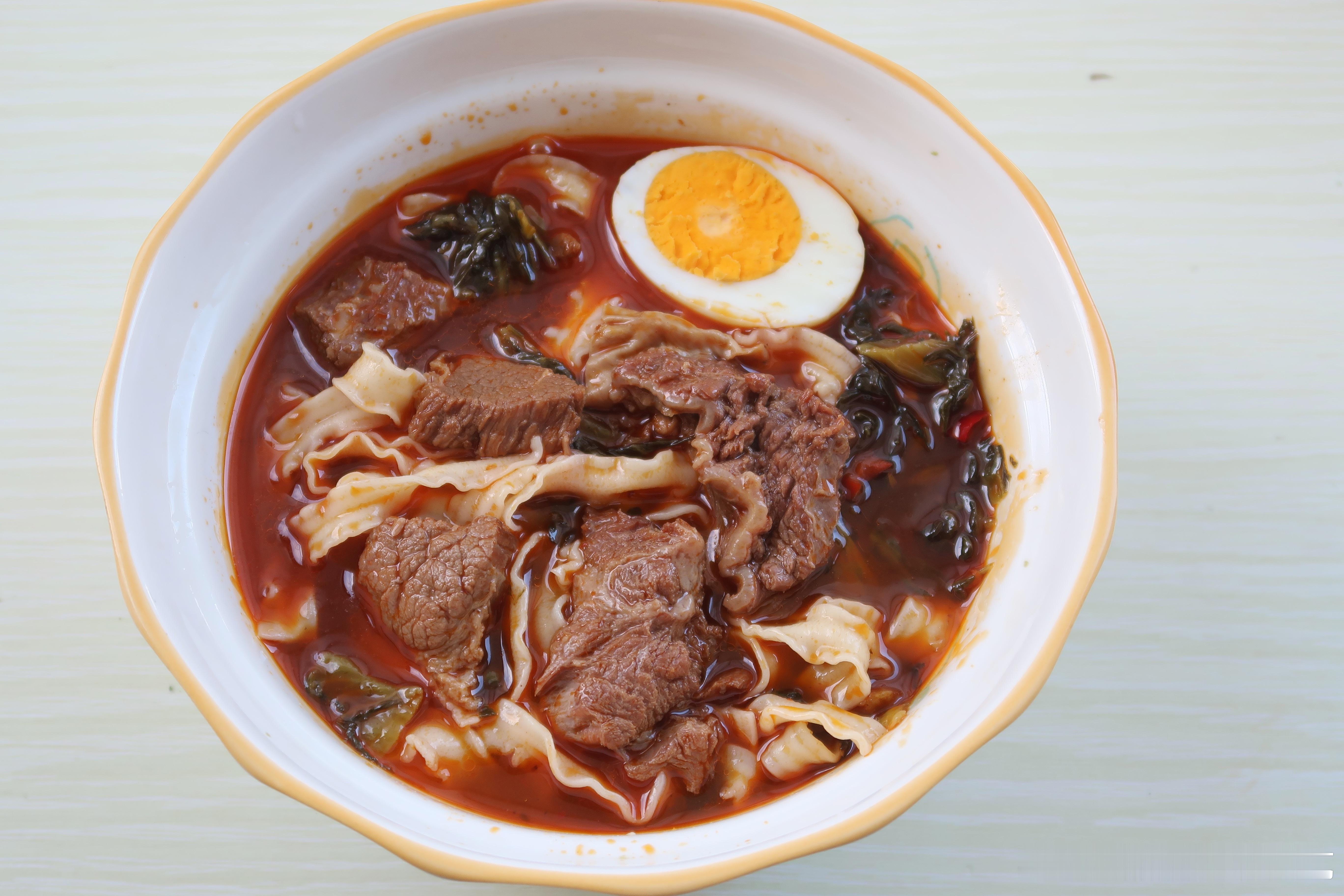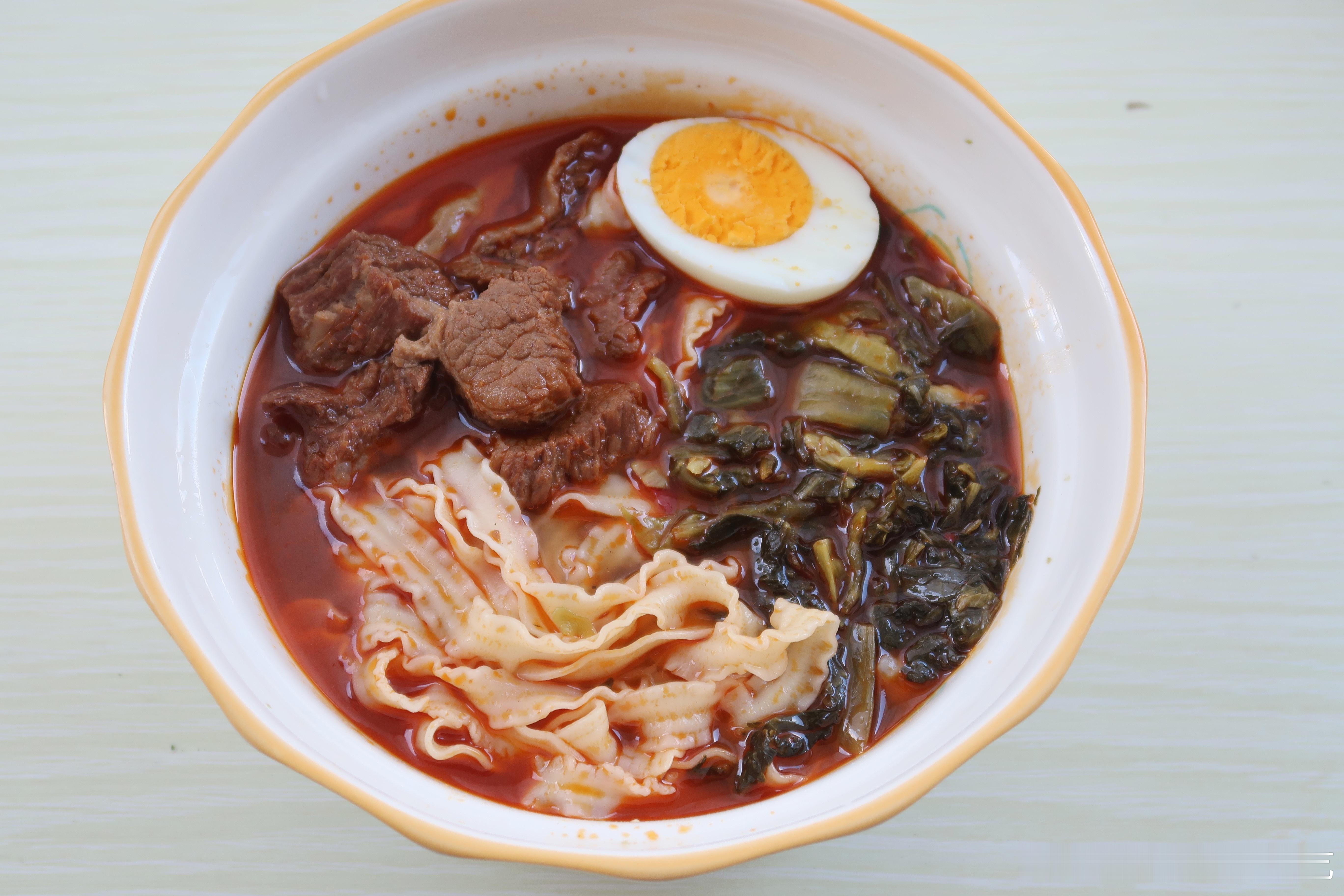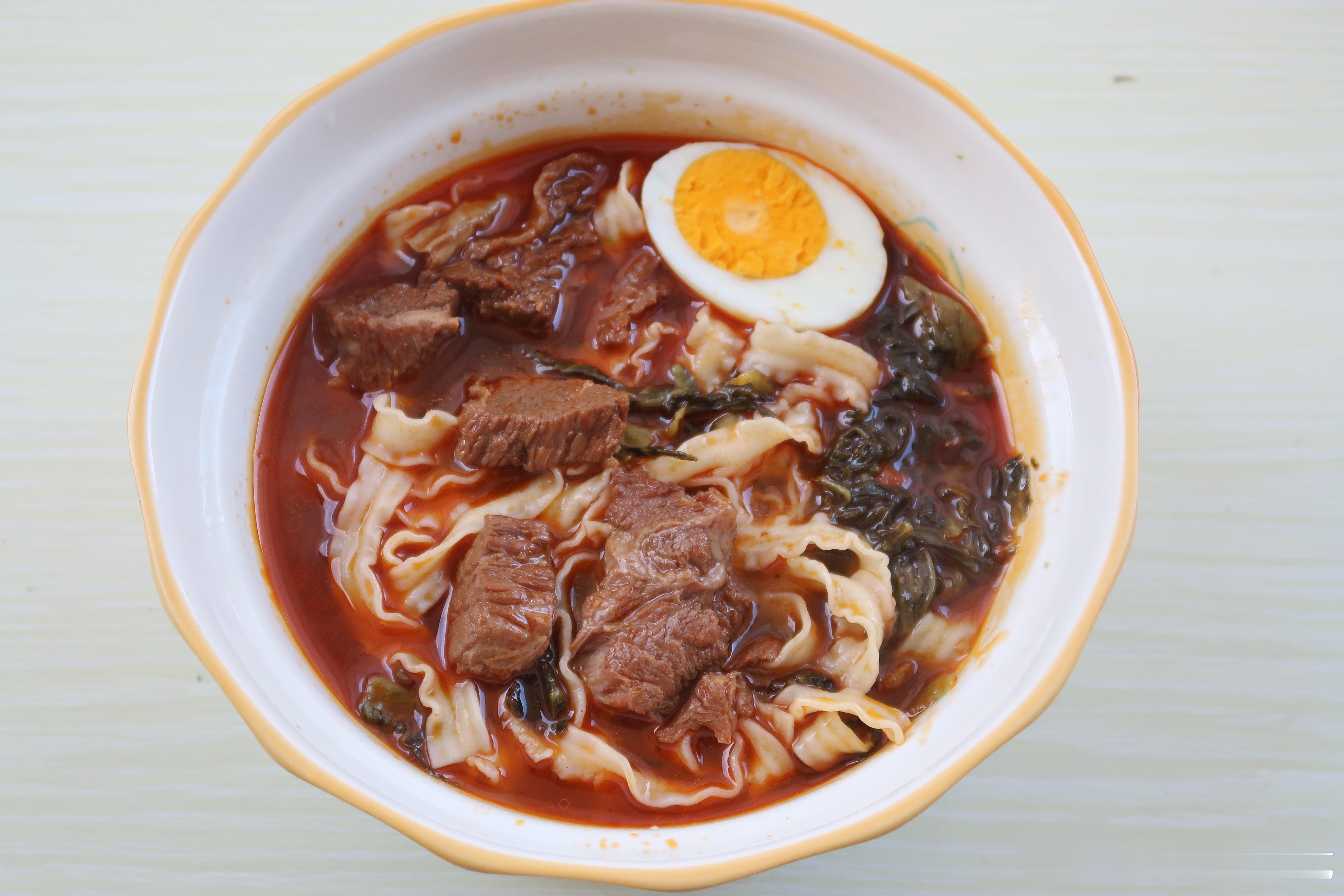 山姆这款红烧牛肉面还不错里面有大块牛肉和开胃酸菜加了豆瓣酱有点川式麻辣口味.#城