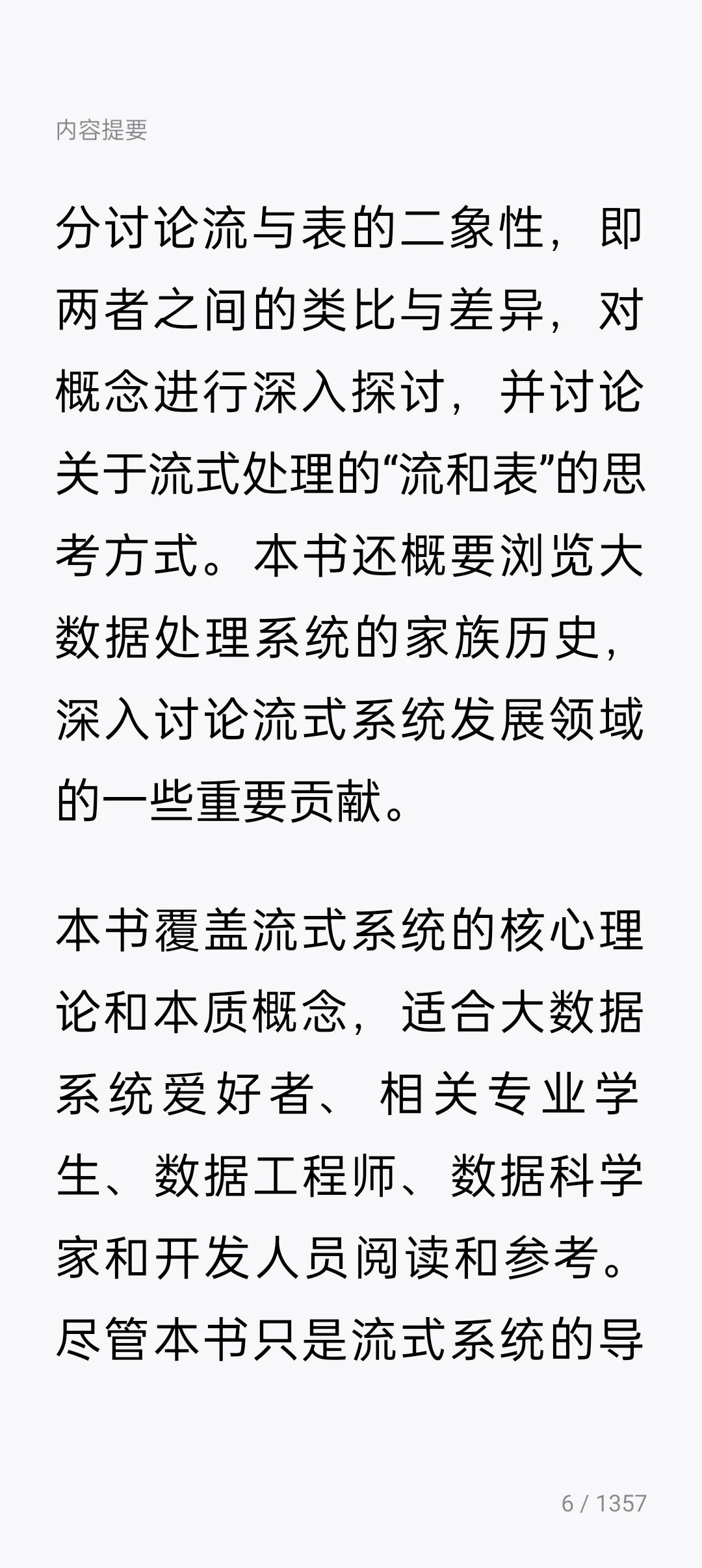 这是一本理论高度概括的书,讲解流式处理核心、本质的概念、特性、设计和方法。