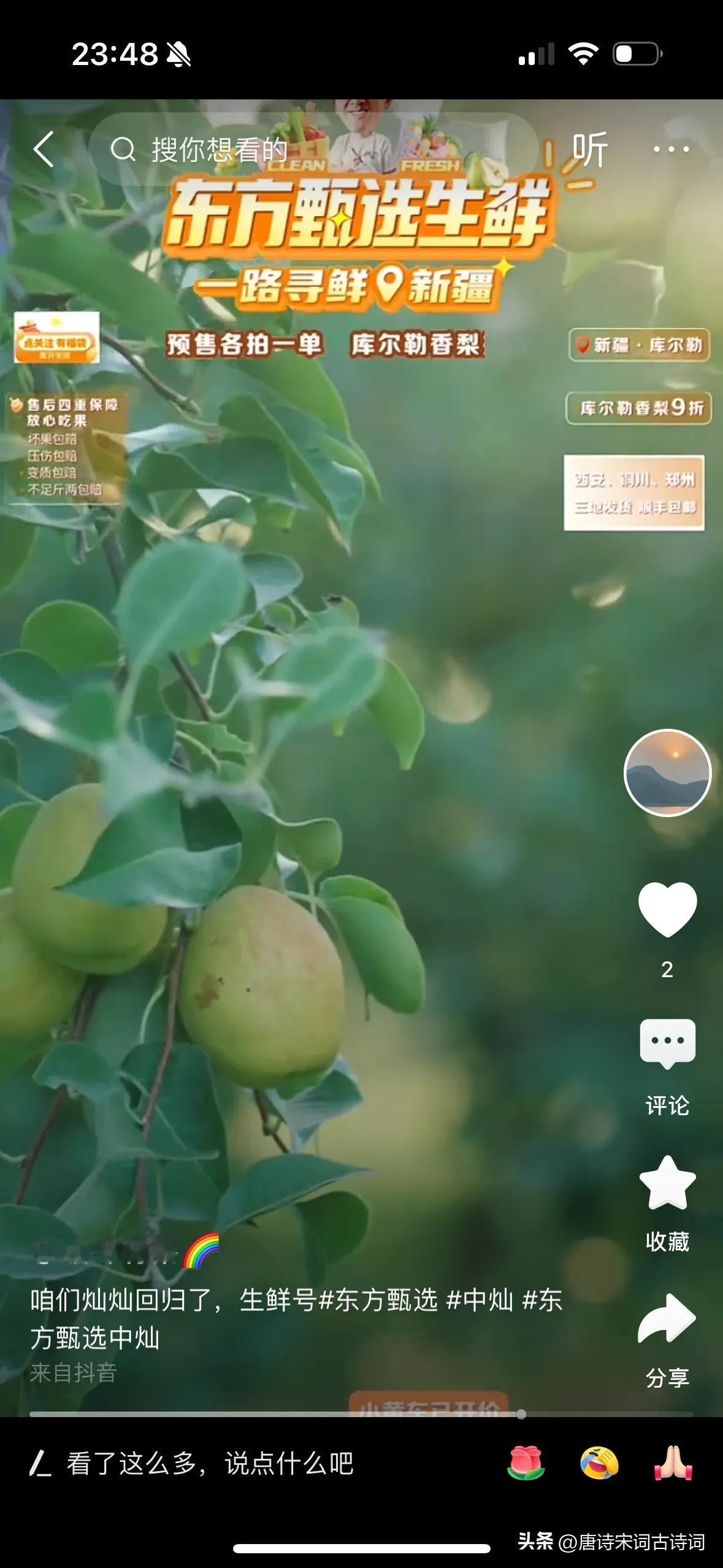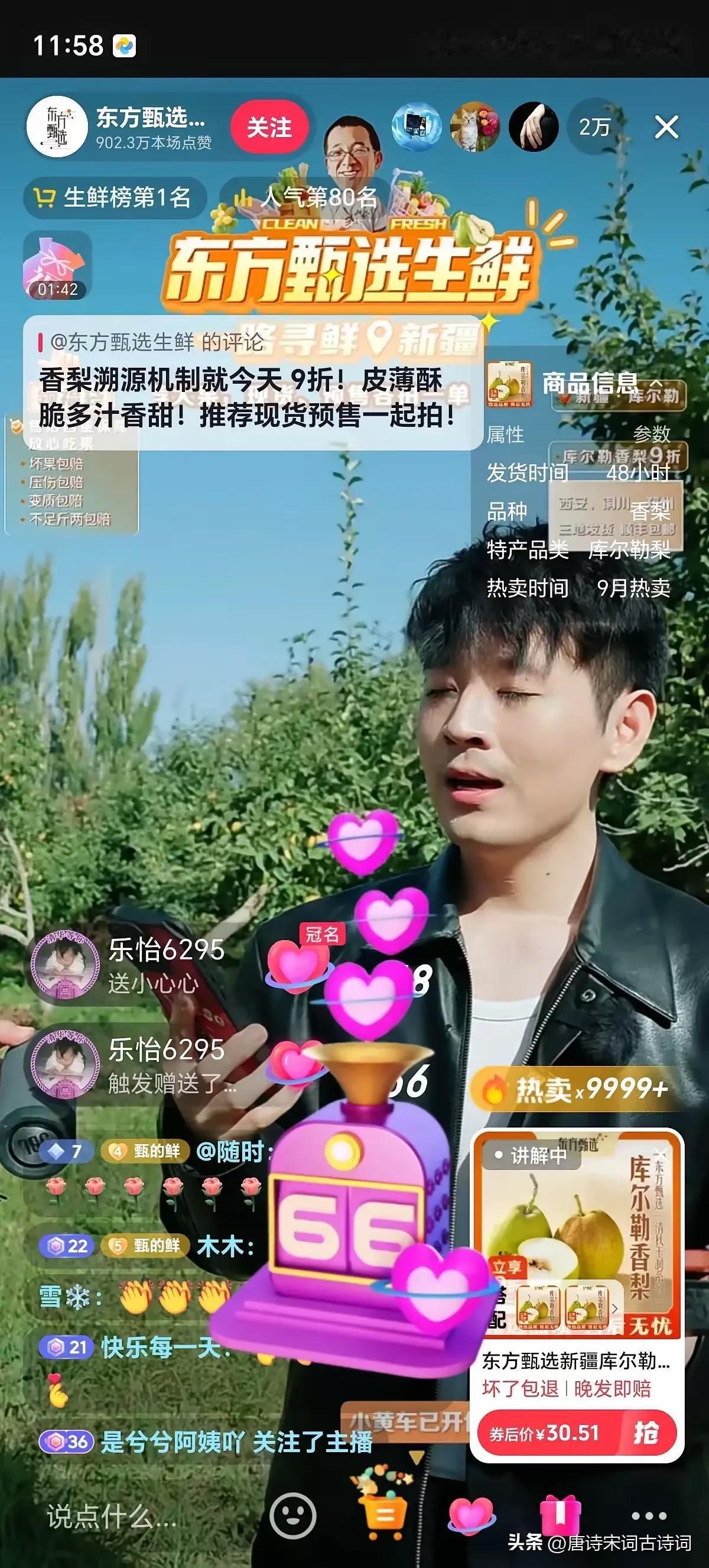 哇哦!中灿回归直播界啦,真是太棒啦!🎉🎉 一定要去他的直播间看看,听听他专业又生动的讲解,感受一下那满满的活力!新疆库尔勒香梨🍐🍐, 期待中灿接下来能带来更多惊喜和精彩内容,相信他一定会用他的热情和专业,让我们这些观众大开眼界,大饱耳福的!加油哦,中灿!