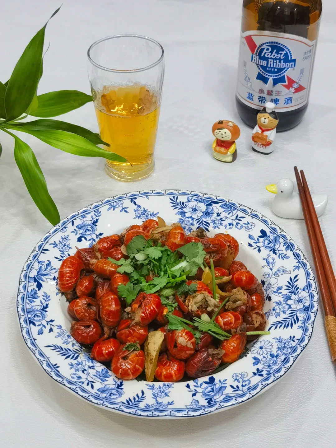 7⃣将炒好的小龙虾尾装盘,撒上切好的香菜段,即可上桌享用。