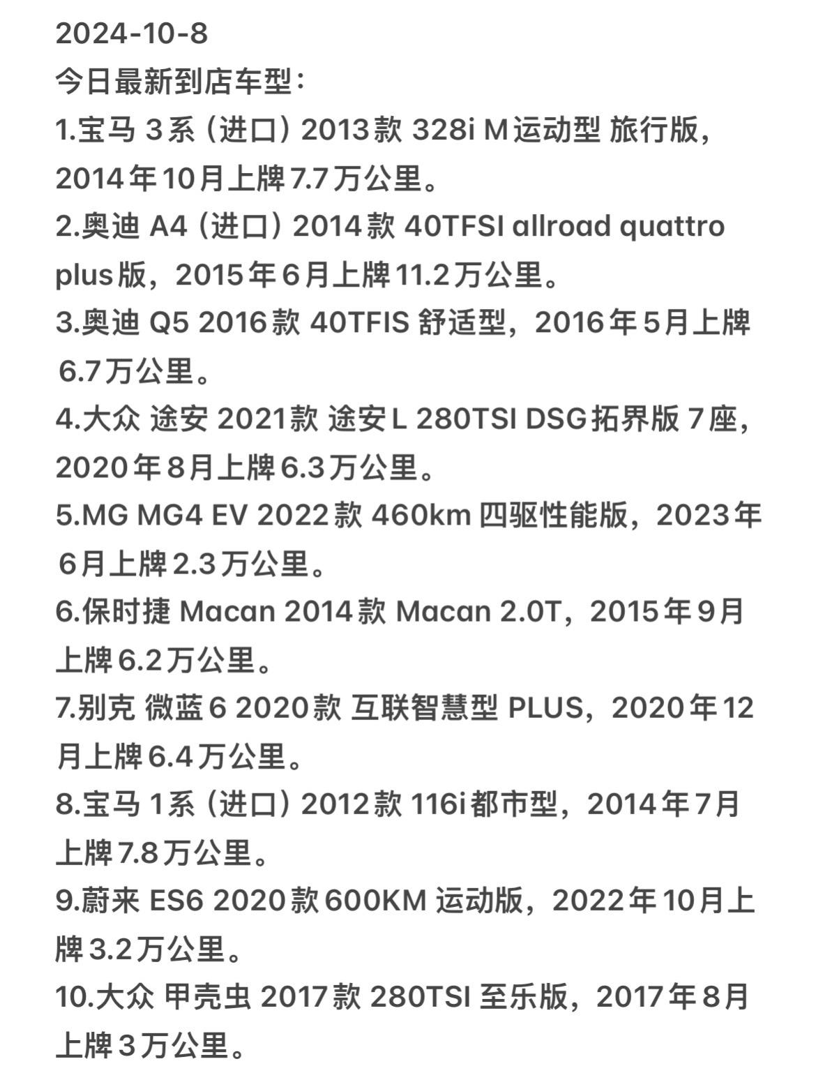 2024.10.8。今日最新到店车型,欢迎各位老板私信了解。详细信息在作品最后噢。