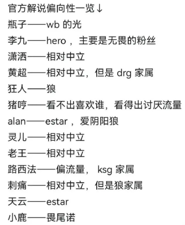 观众总结解说偏向性:李九喜欢无畏,猪哼讨厌流量