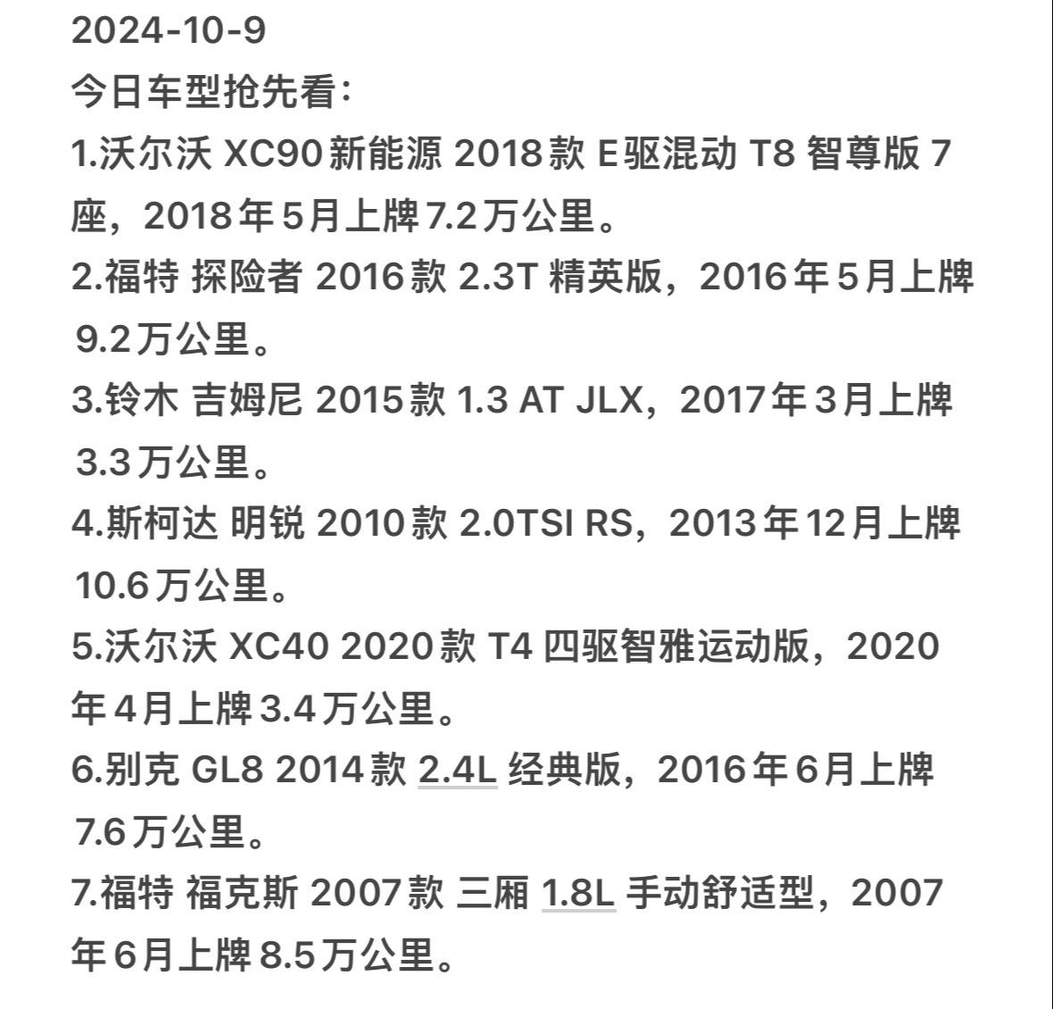 2024.9.29。今日最新上架车型,欢迎各位老板私信了解。