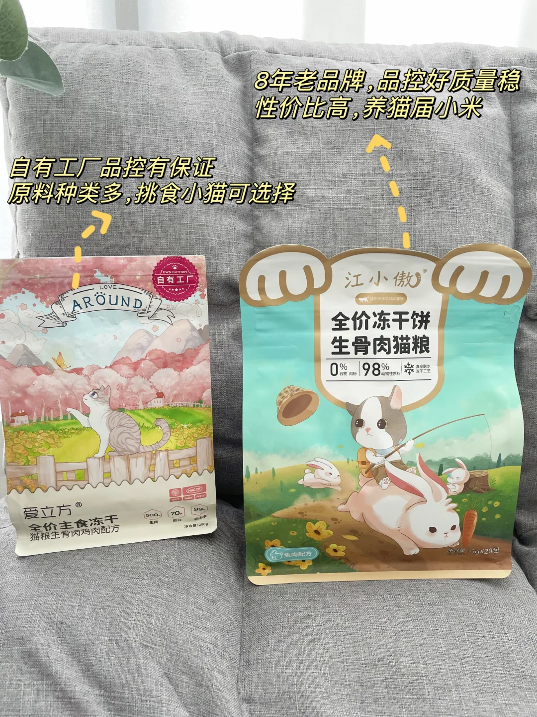 我家猫咪前段时间不咋还吃猫粮,我就想着给他喂主食冻干,尽可能选择肉含量高的,品质有保证的,适口也会比较好一点的,现在喂了大半年了,这江小傲和爱立方这两款主食冻干真的很难抉择!