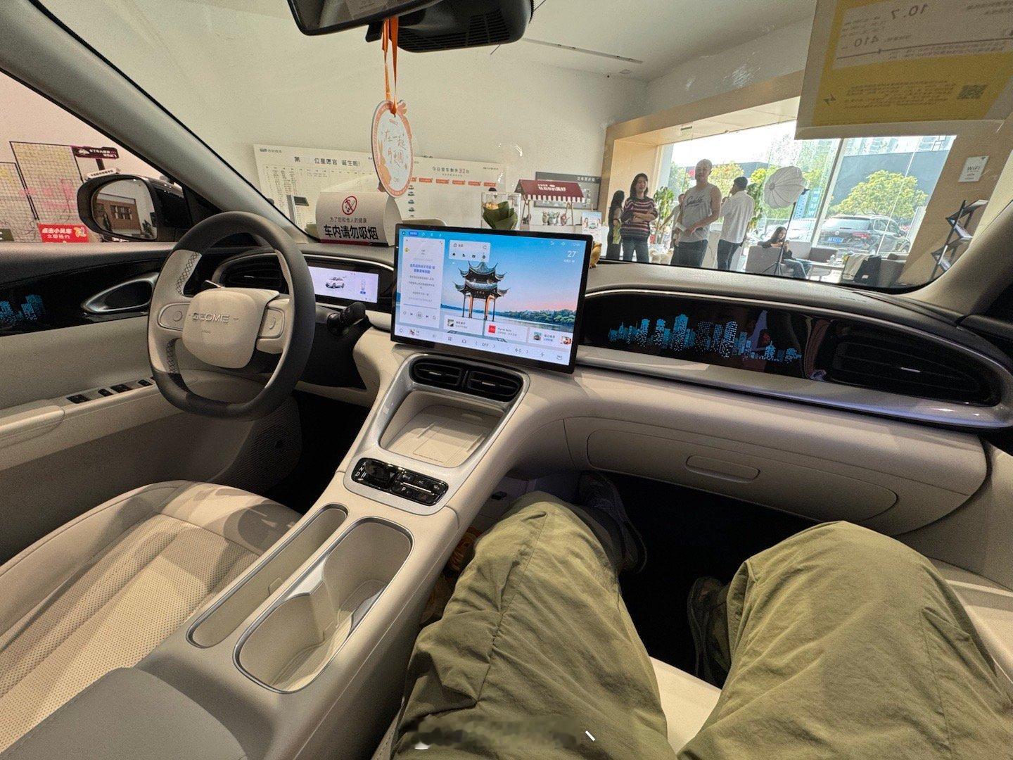 内饰设计很“电车”,很简单,整体用料就是这个价格的水平(有点廉价感)。车机是 Flyme Auto(魅族),多丝滑没有,倒也不卡顿,能用。