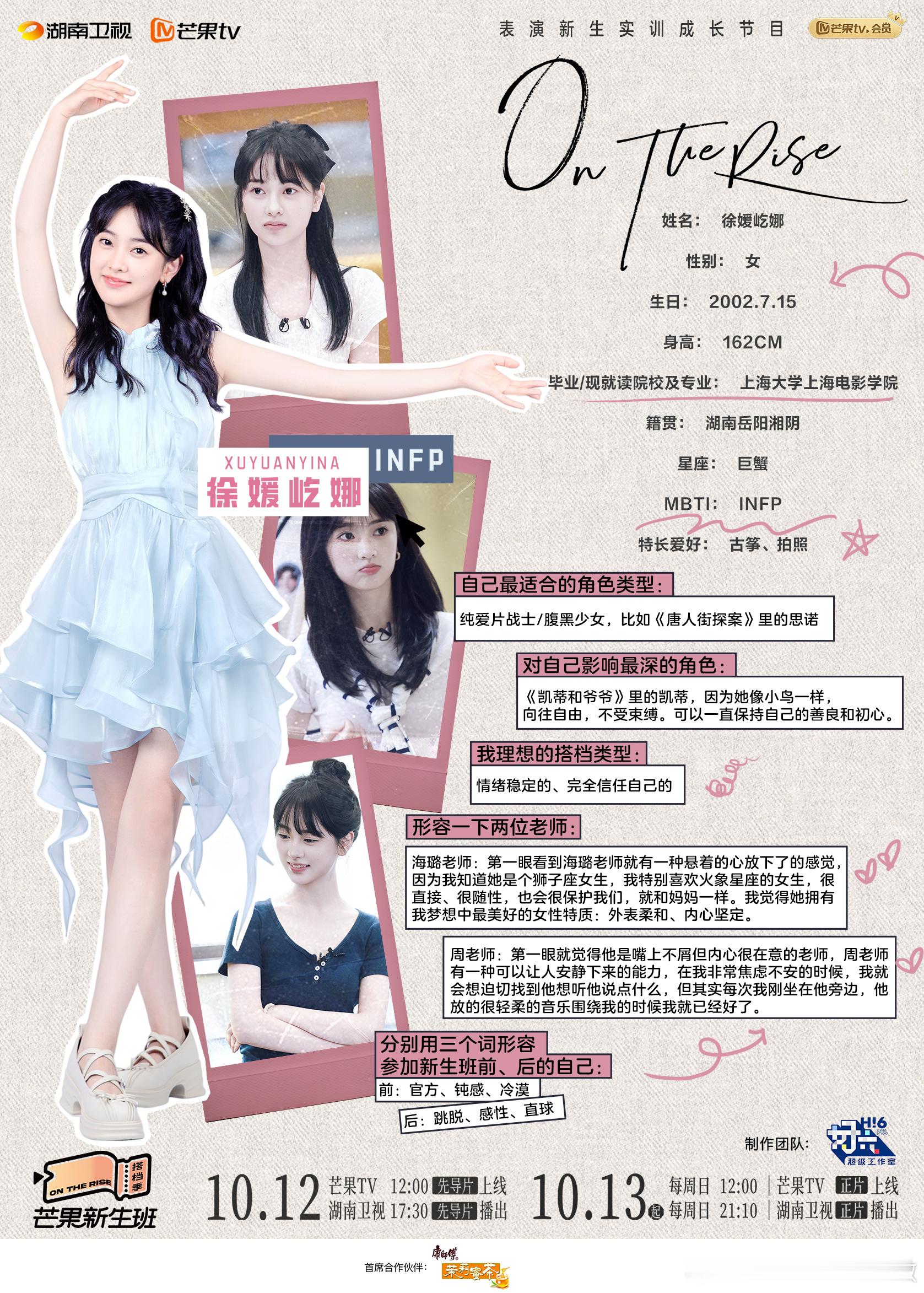 #芒果新生班迎新会# 《芒果新生班·搭档季》正片看得出节目组做了精心的策划,新人演员搭档闯关模式也比较新颖有可看性。节目为观众呈现了围读剧本、试镜,如何准备角色等详细专业的过程。节目也致力于向演艺圈输出优质新人。邀请的两位导师秦海璐和周一围都是非常优秀的专业演员,两人言传身教,希望这十位表演新人能通过这次节目领会表演的更深层意义,发掘出自身更多潜力。十位新生王鼎、王子妤、王乔熙、杨淇源、张斐然、周益如、姚景元、徐媛屹娜、桉好、蔡锦昕基本都是崭新面孔,很期待他们后续的表现,相信节目后期会进一步展示学员们的表演能力成长线,从开始的纯新人到后面肉眼可见的进步。相信这个节目对于想进入影视圈演戏或者正在学表演的新人也具有启发作用。 #芒果新生班搭档季#