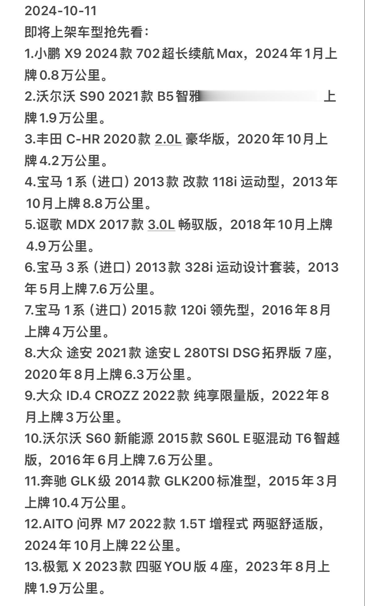 2024.9.29。今日最新上架车型,欢迎各位老板私信了解。