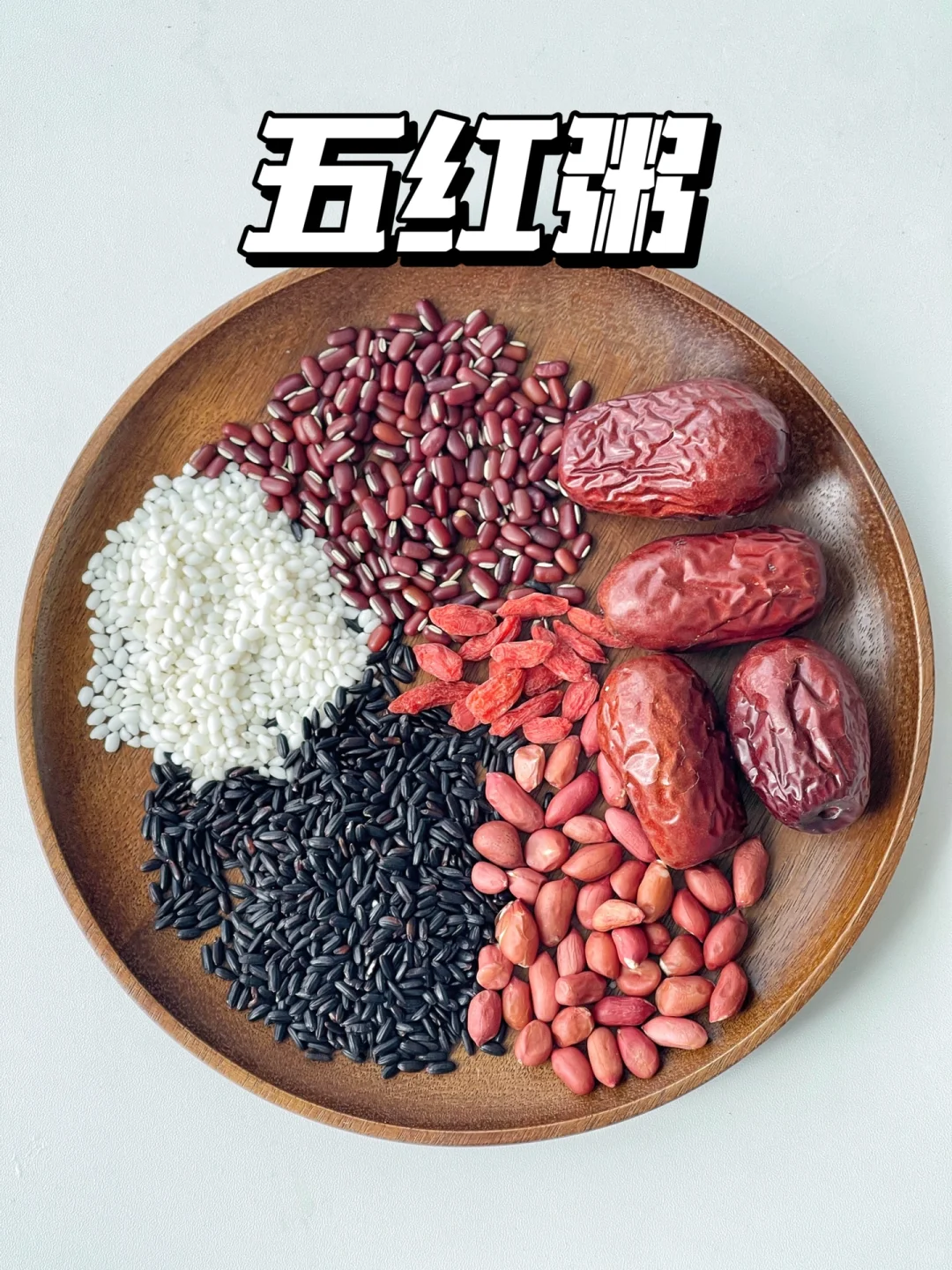 最近早餐常做的五红粥分享给大家,好喝又补气🩸。女生一定要多喝哦[偷笑R] - 五红粥做法 - 🔹食材: 红豆15克、糯米20克、大红枣4颗(小的可以7~8颗)、黑米20克、红皮花生15克、枸杞适量、红糖适量。 🔹制作方法: 除红糖外其他食材放电饭煲加适量水一键煮粥模式,煮好后加红糖拌匀即可。(喜欢喝粘稠的建议水稍微少一点)也可以所有食材放破壁机一键米糊模式。