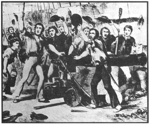 英国军官也伤亡惨重。“宪法号”的扫射放倒了大副、二副、三副,还有一名海军陆战队中尉和三个见习军官。领航长膝盖中弹。