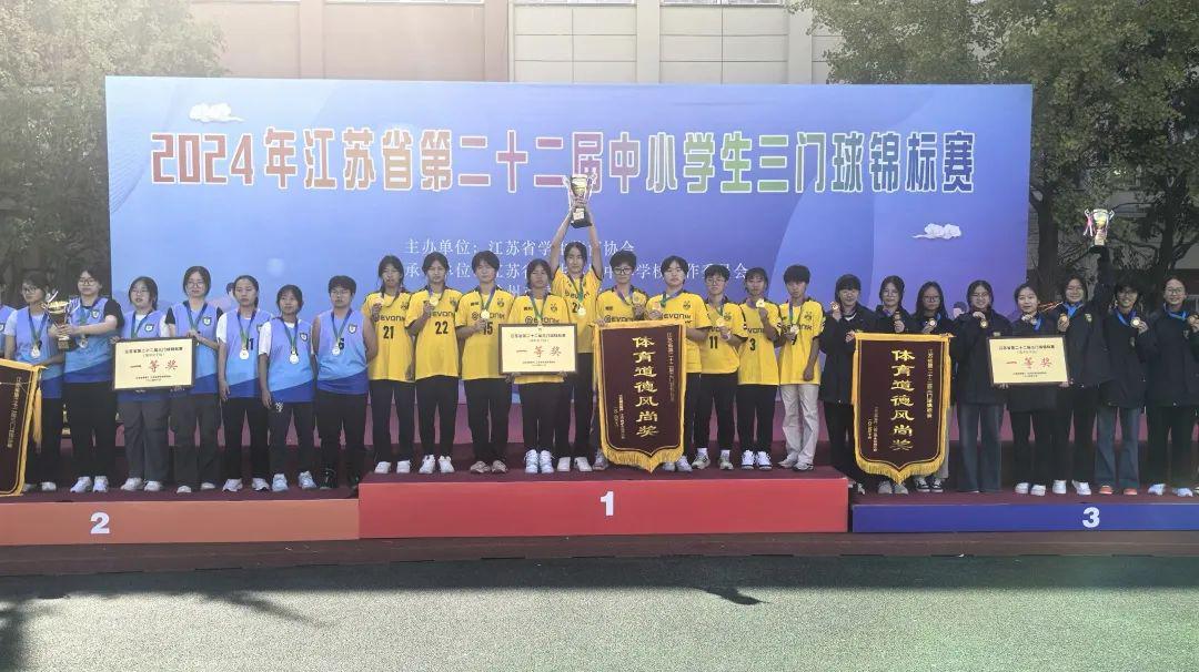 10月20日,江苏省第二十二届中小学生三门球锦标赛在徐州市铜山中学圆满收官。江阴市青阳中学女子三门球队经过激烈比拼,以全胜的成绩,荣获高中女子组冠军,并被授予“体育道德风尚奖”。