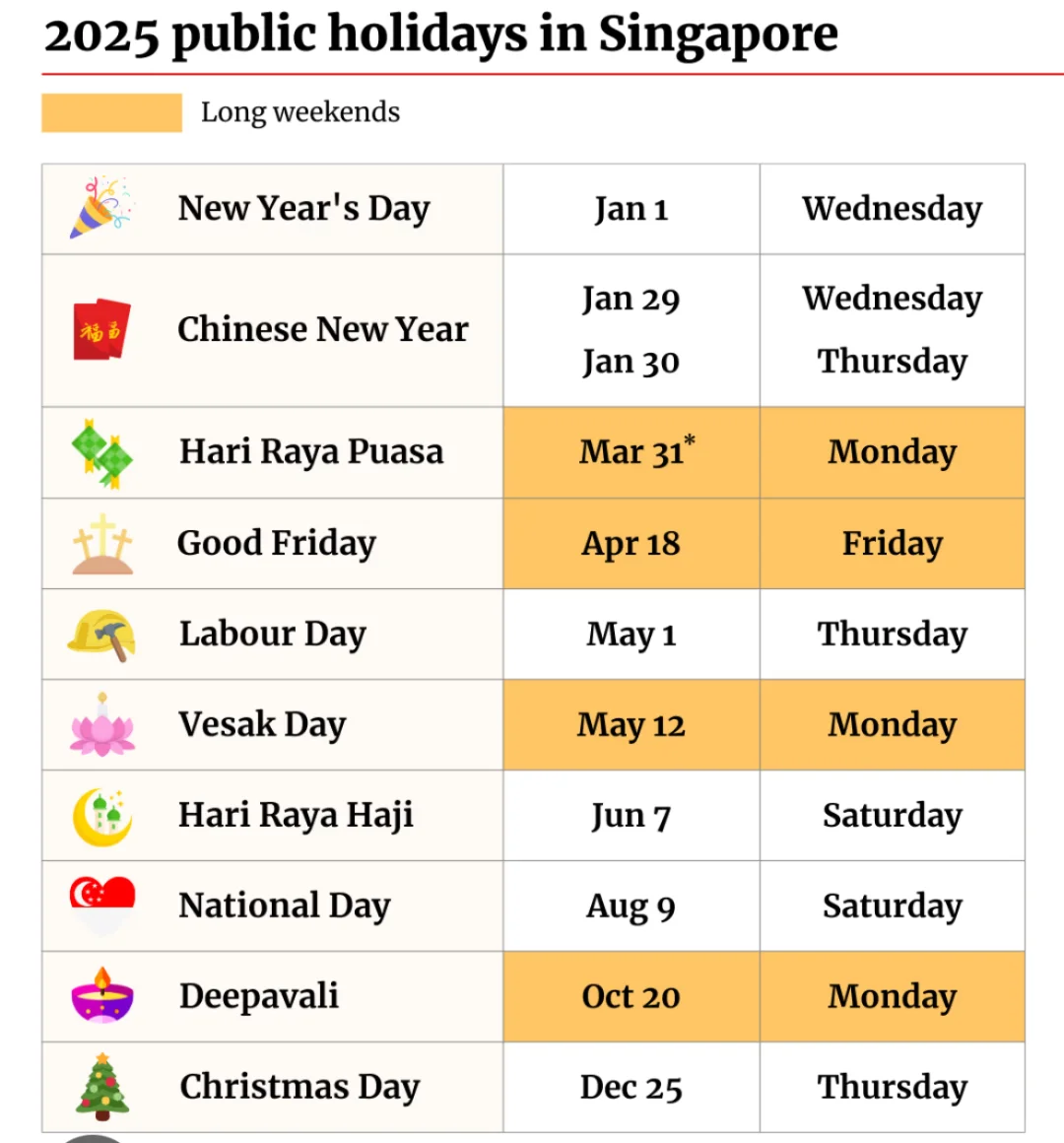 新加坡🇸🇬2025年公共假期安排出炉啦‼️