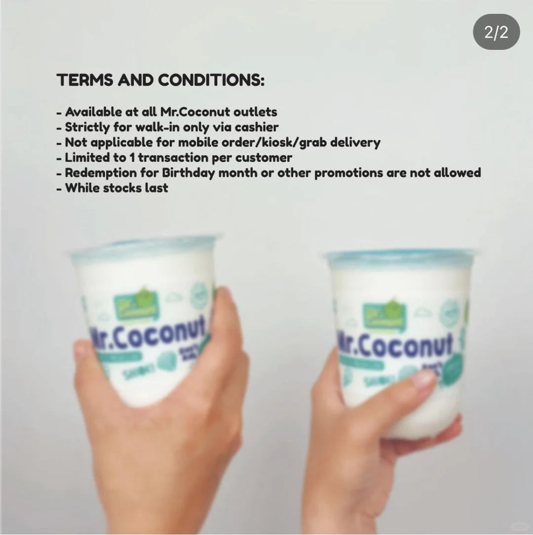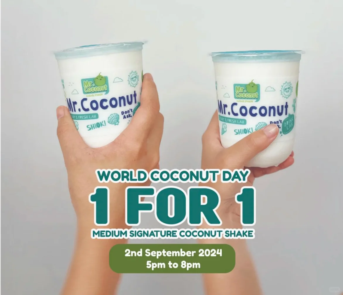 📅9🈷️2号 下周一 ⏰5-8.pm [种草R]除了Jewel店,其余店铺均参加活动 [种草R]每人只能购买一杯,只能walk-in [种草R]Only applicable for Medium Size coconut shake 爱好Coconut的不要错过哦
