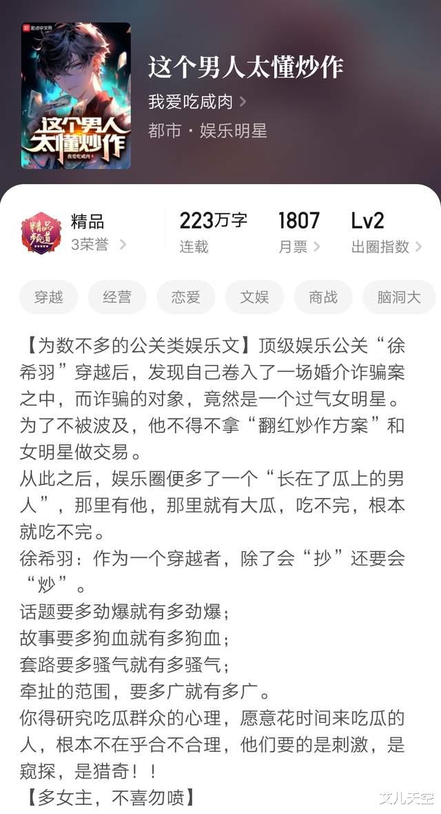 作者之前写过《王牌经纪人从女团开始》《写文娱被女反派原型找上门》,都是跟文娱相关的题材。