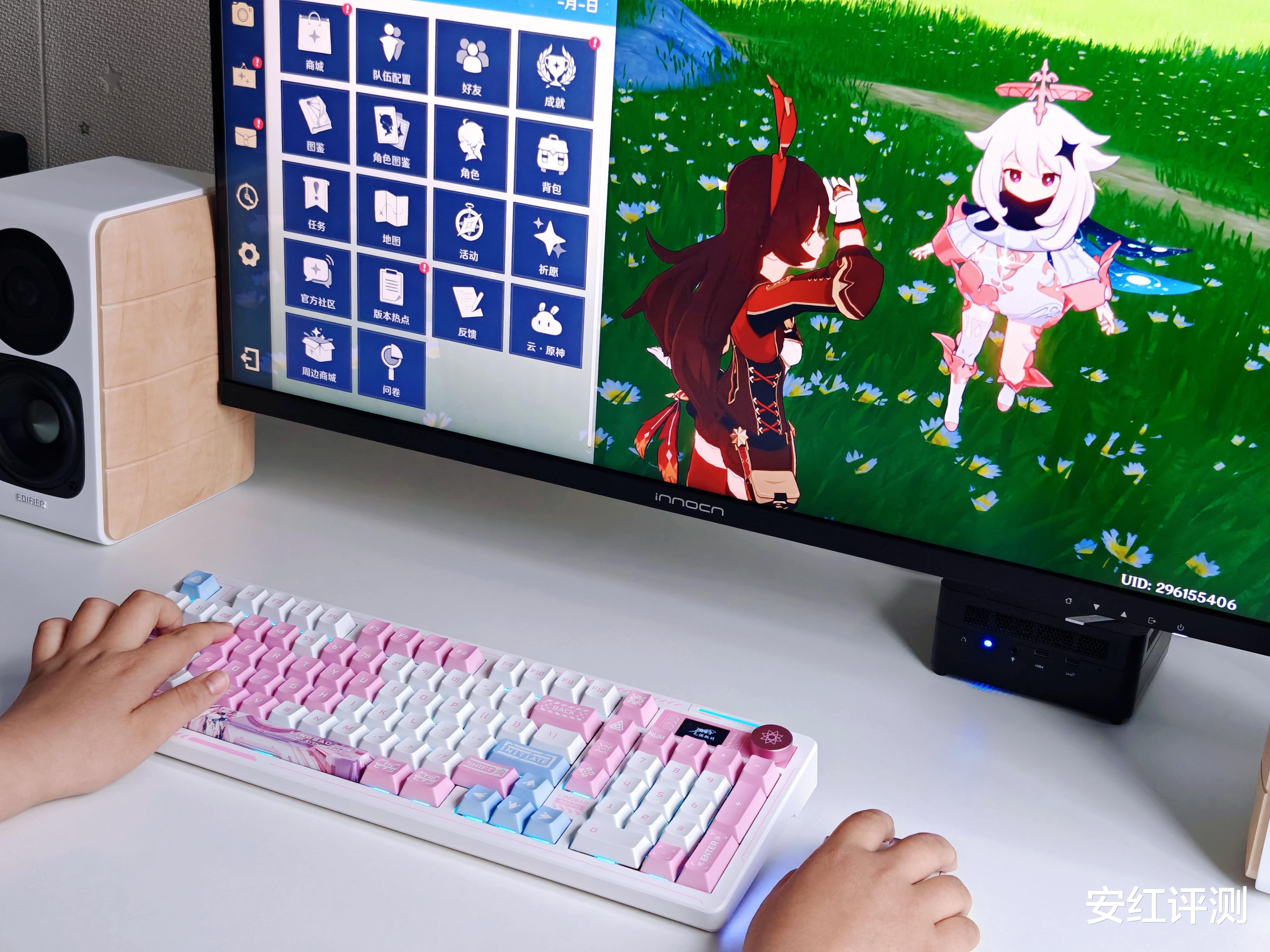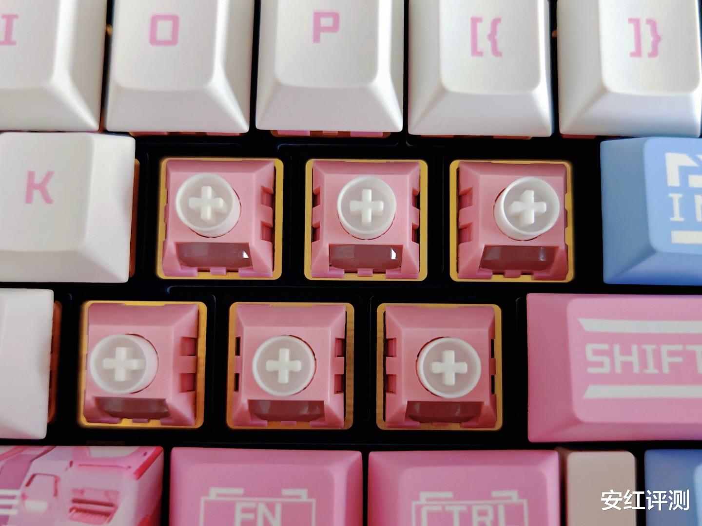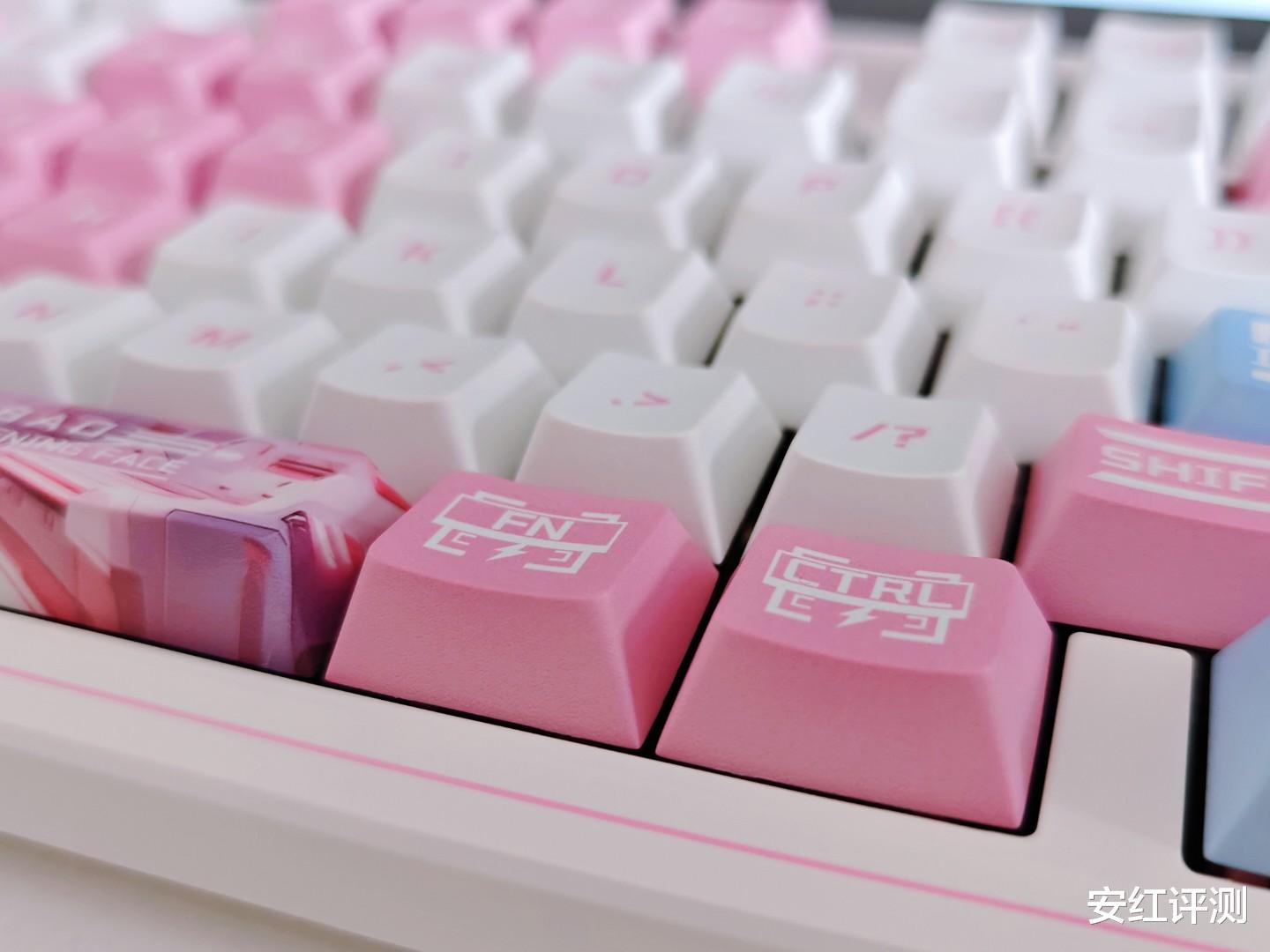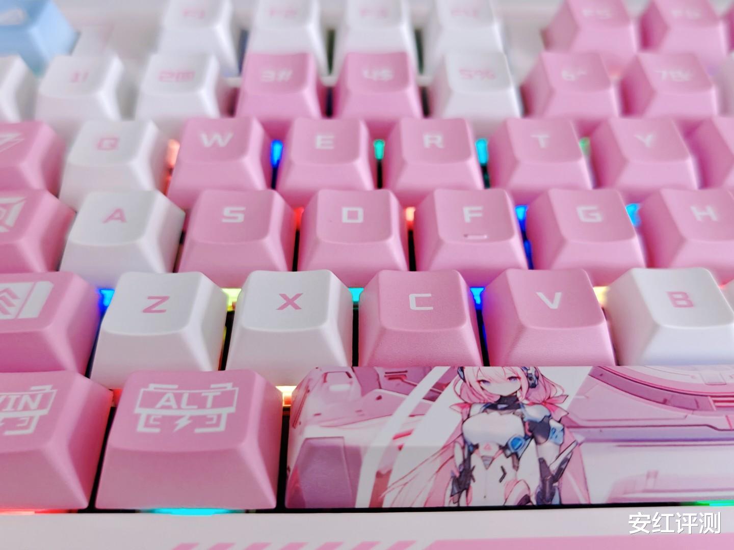 键盘采用IP主题款键帽,原厂高度,从细节上看,每个按键都精心设计了字符和图案,尤其是键帽上的二次元图案,充满创意和浪漫。略带磨砂的表面处理,不会因为手部出汗打滑和打油,操作起来干燥清爽。