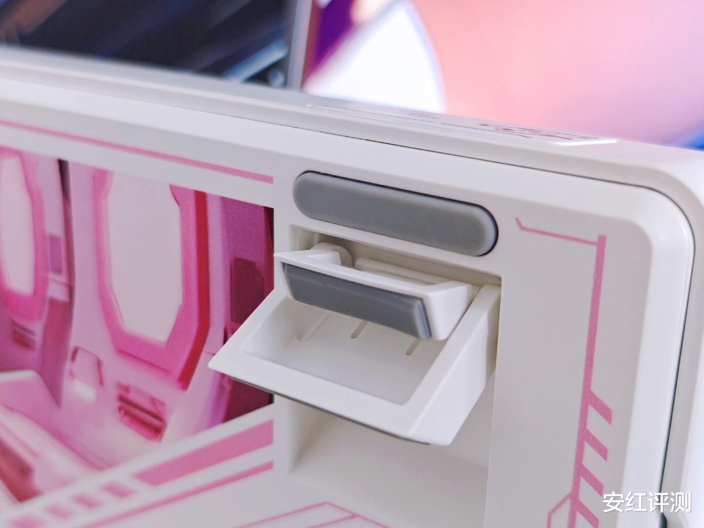 键盘顶部一侧设有隐藏式2.4G接收器收纳仓,磁吸设计,轻轻按压即可轻松拿取,也可避免接收器在收纳时损坏或丢失,磁吸收纳仓设计在顶部比隐藏在底部跟更直观;另一侧设有开关键和有线模式/USB-C充电接口,可以随使用场合切换。