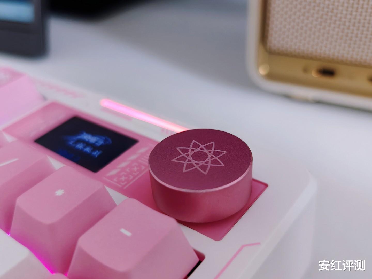 凌豹K98Pro的1.14英寸LCD显示屏与多功能旋钮相结合,可配合驱动解锁更多玩法,通过转动旋钮可显示时间、电量、使用状态等;亦可设置连接方式、系统切换、灯光效果等,屏幕显示简单,操作便捷,此款键盘更是直击我的心巴。