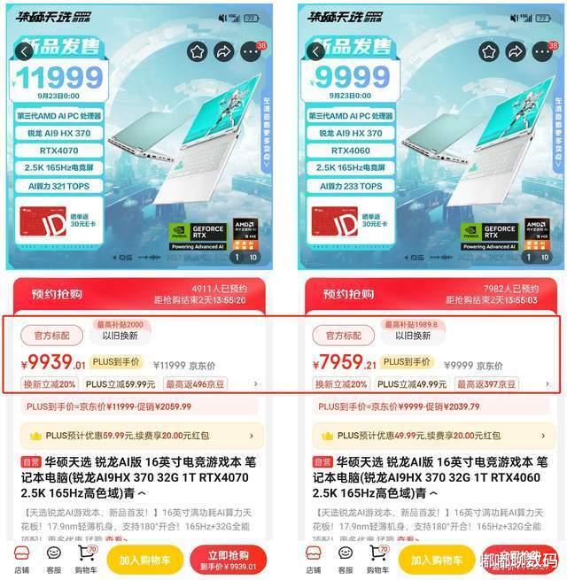不妨让我们在京东平台算一笔账单,就拿华硕天选 锐龙AI版(RTX4060显卡)的配置来说,参与换新补贴福利后,到手价只要7900多元,而如果选择RTX4070显卡版本,同样能优惠2000多元,从11999元直接来到9939元,确实相当划算,而且不仅是换新可用,直接购买新品也能享受补贴福利,建议大家不要错过这个机会。