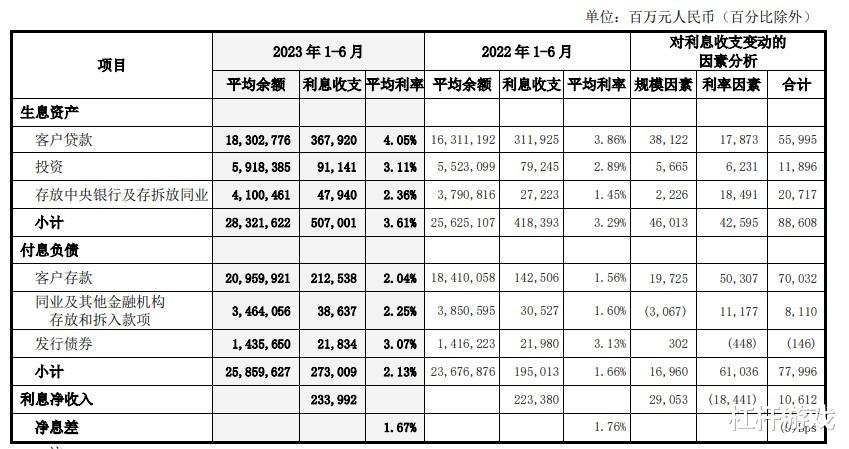 1)2023上半年,客户贷款利息收入3679.20亿元,同比增加559.95亿元,增长17.95%,主要是客户贷款规模增加及外币贷款收益率上升带动。