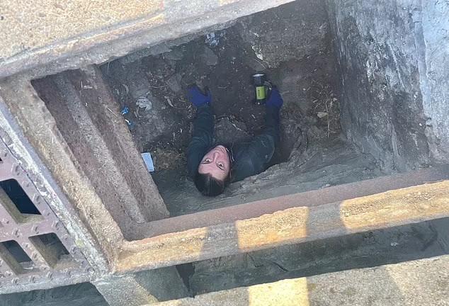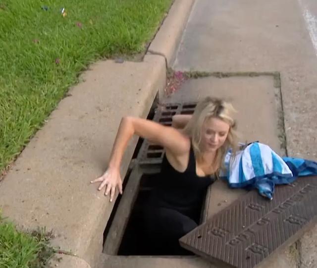 她回车里拿起儿子的一个玩具手电筒,然后从下水道上拉开金属格栅,小心翼翼爬进水沟。