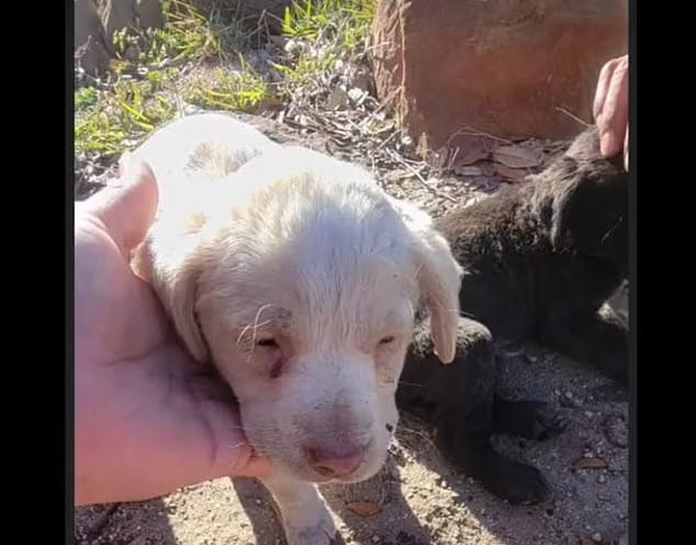 卡莉不确定这些小狗为什么会被困在水沟里,