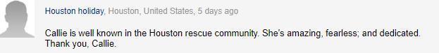 “卡莉在休斯顿救援圈子里很有名。她很了不起,无所畏惧。谢谢你,卡莉。”
