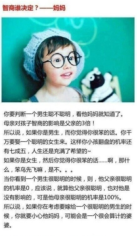 卧槽!夫妻中谁的基因决定孩子的智商和相貌?看完就涨姿势了!