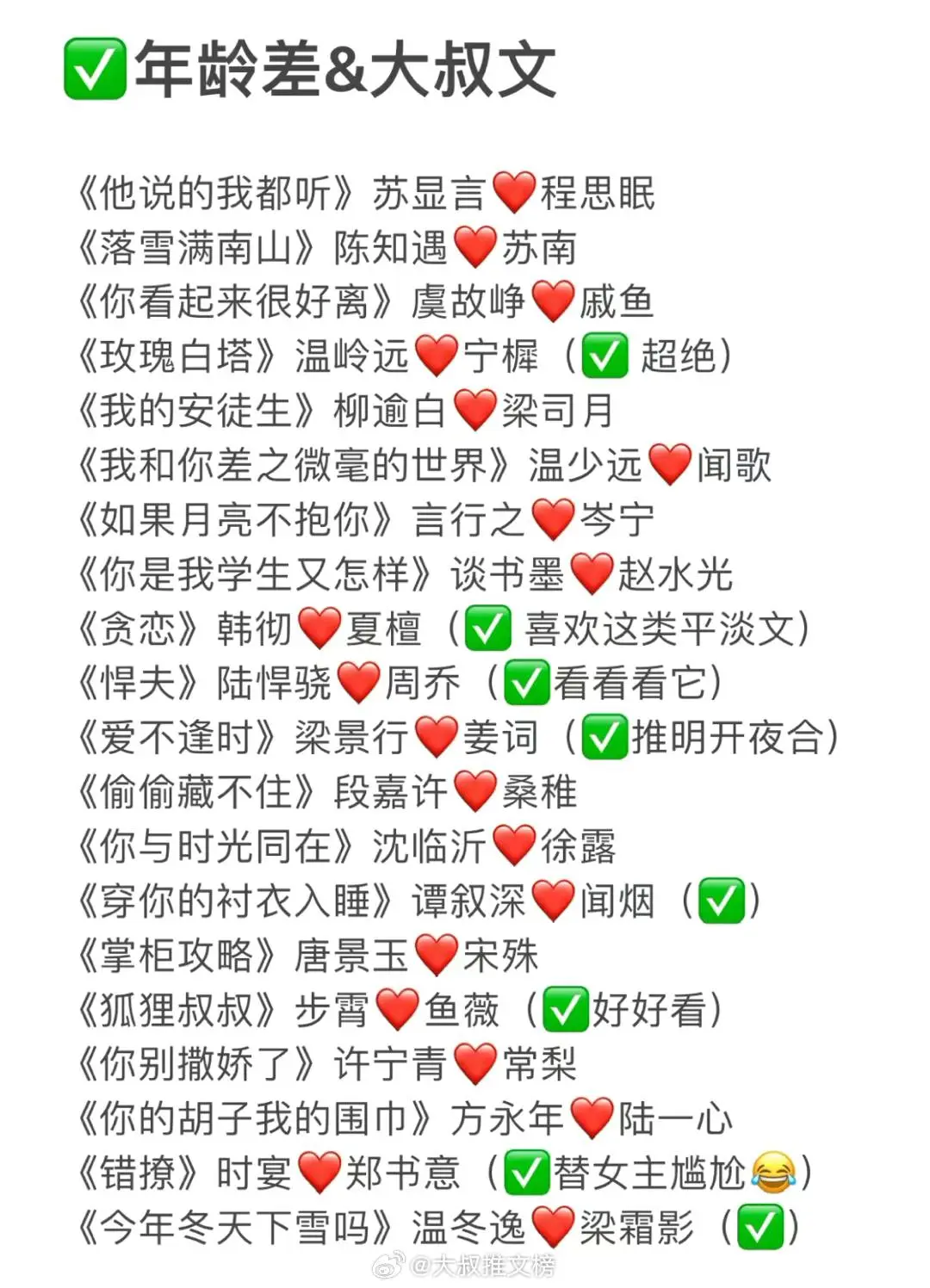值得N刷的各类型小说天花板,剧情文笔双在线,你都看过了吗,哪篇是你心中最喜欢的呀![在线等] 📍欢喜冤家丨互怼搞笑又甜又爽 📍疯批病娇丨偏执占有 救赎重生 📍暗恋成真丨太懂我们暗恋人士了 📍睡前甜饼丨做梦的素材都有了 📍大叔年龄差丨超暖 毫无抵抗力