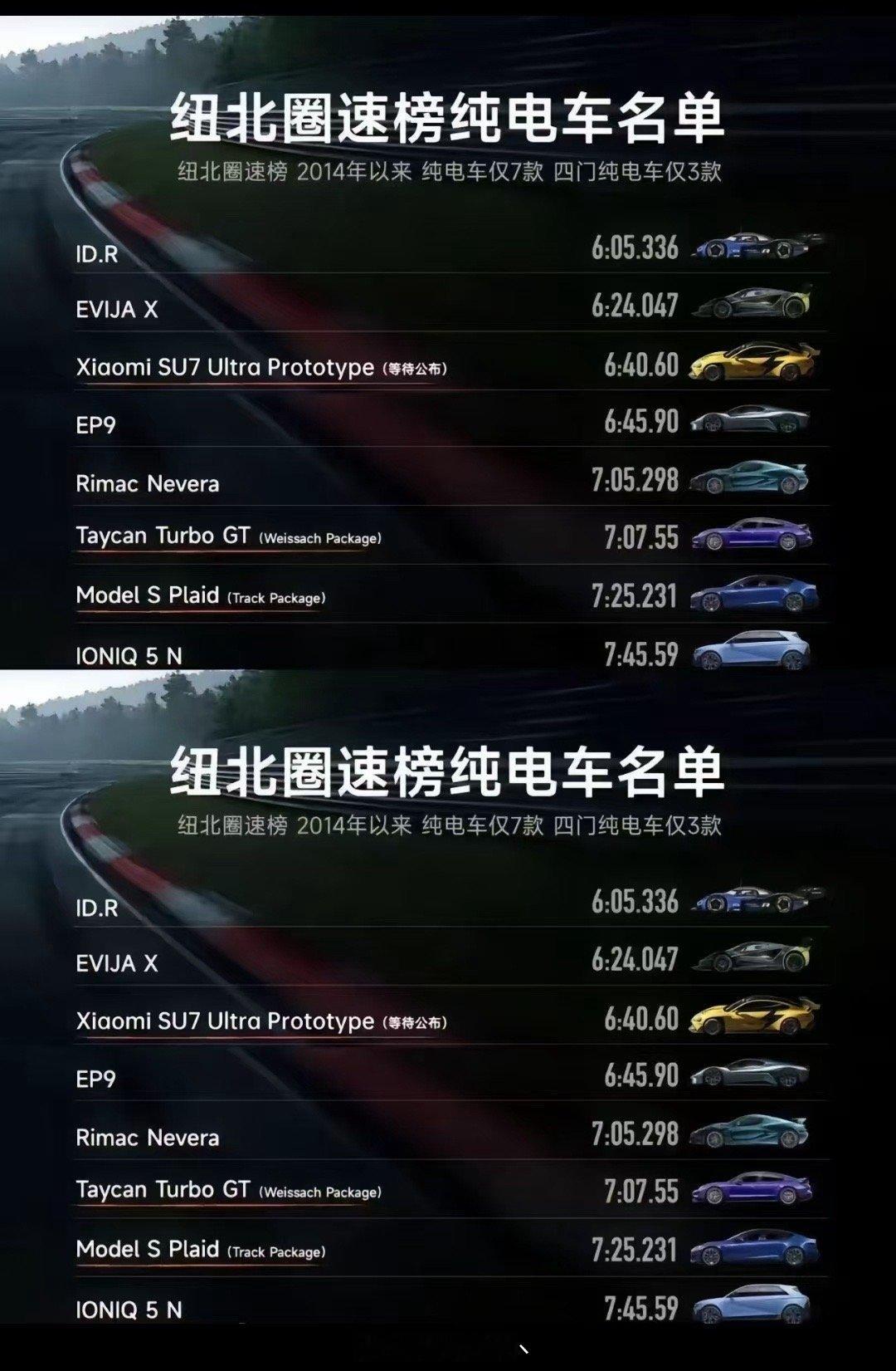 6分46秒874,刷新纽博格林北环赛道 四门车圈速纪录,成为纽北史上最速四门车!!我米牛逼。(图2圈速榜,su7纠正为6分46秒)