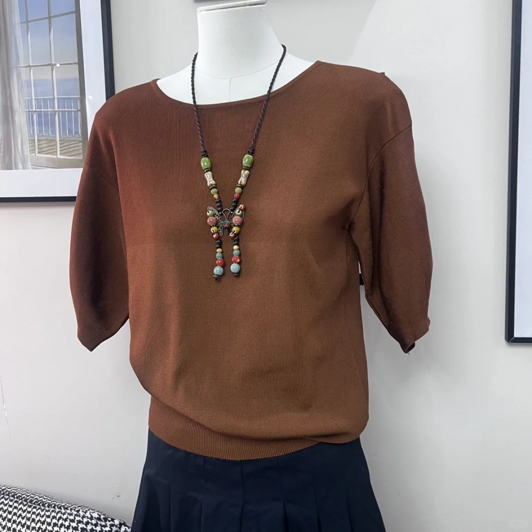 好划算的价格!!!!她家在商场里🉑贵了 hin喜欢针织短袖[害羞R]初秋穿很合适 栗子色🌰🌰🌰