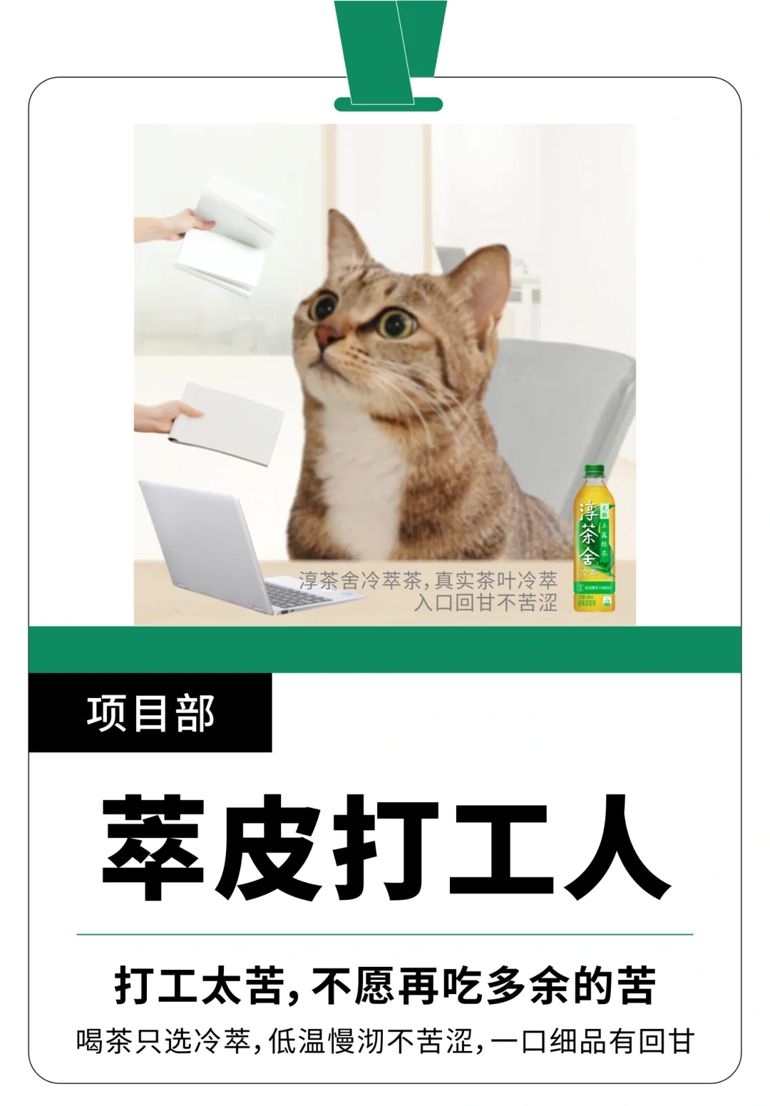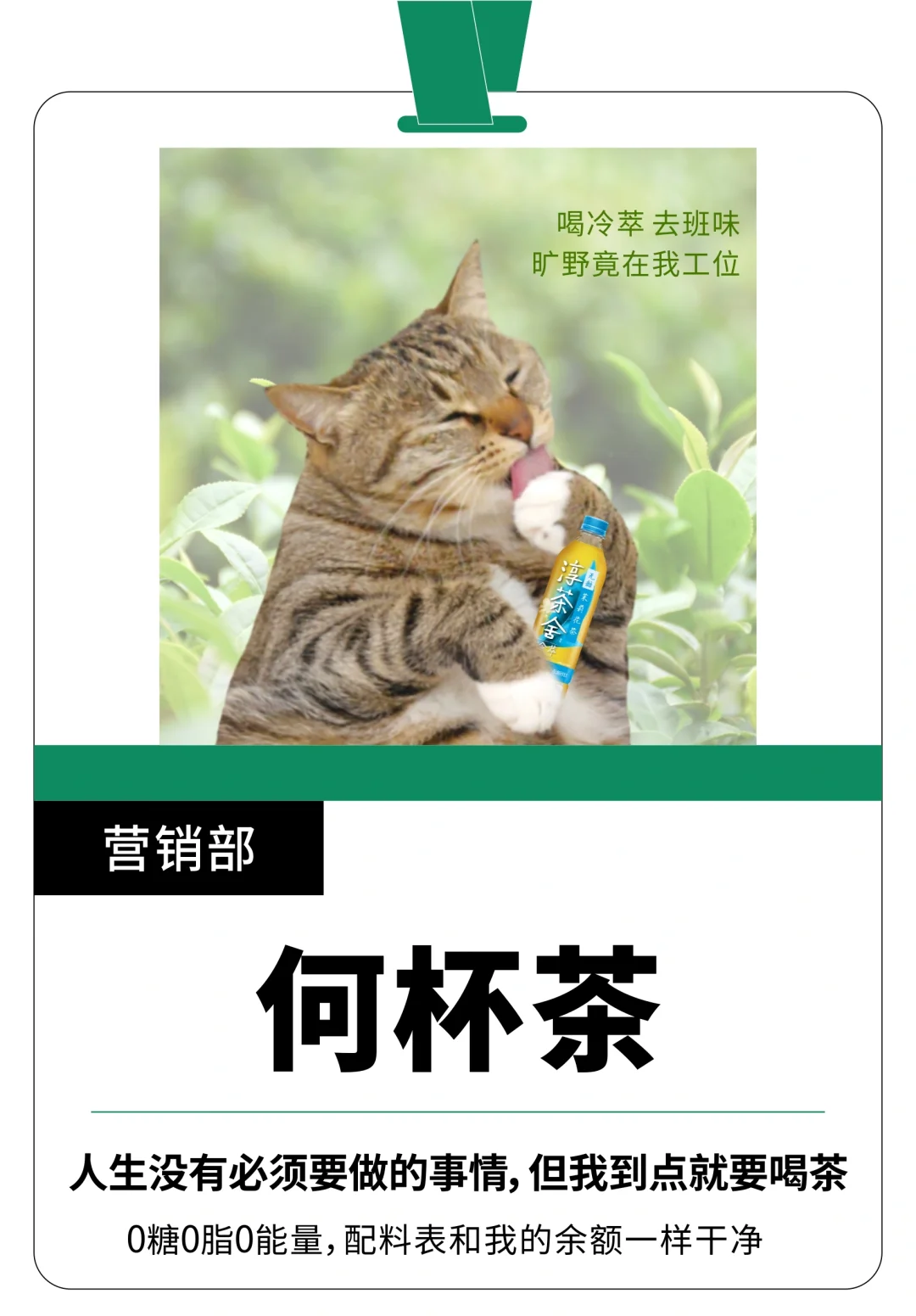 既然去不了旷野,那就在工位上野! 杨没吐气 系统故张 邢收到 何杯茶 萃皮打工人…… 每天疲惫,一身班味 还好有冷萃茶 淡雅的茉莉花茶、清新的玉露绿茶、馥郁的武夷大红袍、甘醇的铁观音乌龙茶 一口冷萃,压下班味 低温慢沏,自然回甘不苦涩 0糖0脂0能量,无糖茶也能很好喝 低咖啡因,喝完也不怕失眠啦~