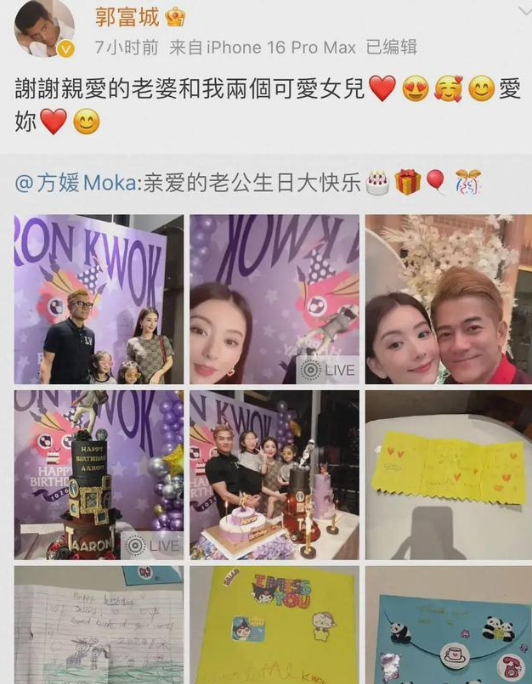 郭富城仅用一场生日宴,证明了自己的眼光有多好,熊黛林输的丝毫不冤枉。 近日,郭富城迎来了自己的59岁生日,方媛亲自为对方操办宴会,宴会上的一些小细节,更是证明了郭富城的眼光有多好。 从郭富城晒出的生日蛋糕,能够看到,中间部分,全是用他们一家四口的照片,拼凑而成的,可以说在蛋糕方面,方媛是真的用心了。 除此之外,郭富城也收到了来自女儿们,最暖心的礼物,早在郭富城过生日之前,两个孩子便开始准备,给父亲制作生日贺卡。 虽然小小的卡片不值什么钱,但这份心意,才是郭富城最珍惜的,而这也是郭富城,一直秉持的信念,只有方媛才懂他。 要知道早年郭富城还曾与熊黛林,交往了八年时间,所有人都以为,这二人会修成正果,可熊黛林却选择了分手。 还在外吐槽,天王简直太抠门,恋爱这么多年,从来没有送过自己,任何昂贵的礼物。 就连他演唱会的门票,郭富城都不会送前排,毕竟前排的价格与后面的,完全不是一个级别。 不过真正让熊黛林接受不了的,还是她30岁生日那会,郭富城罕见提了一辆豪车。 媒体都猜测,这辆车是送给熊黛林当生日礼物的,没想到最后,熊黛林却只拿到了,这辆车副驾的使用权。 最终熊黛林忍无可忍,与郭富城分开,分手之后,熊黛林嫁给了富二代郭可颂,早在追求阶段,郭可颂就十分大方,各种名表包包送不停。 熊黛林产子之后,郭可颂更是在半山别墅,给熊黛林置办了一套房产,如今熊黛林生活的相当幸福。 而郭富城也遇到了真正懂他的女人方媛。 方媛不在乎郭富城,资产全都放在经纪人小美手中,也不在乎,郭富城给自己准备的寒酸婚礼,甚至就连平日里乘坐飞机,方媛都甘愿带着孩子坐经济舱。 她愿意陪着郭富城一起节俭,只要二人过得幸福就好了,看到这里才明白,熊黛林输给方媛,真是一点都不冤枉,那么对此你们有何看法。