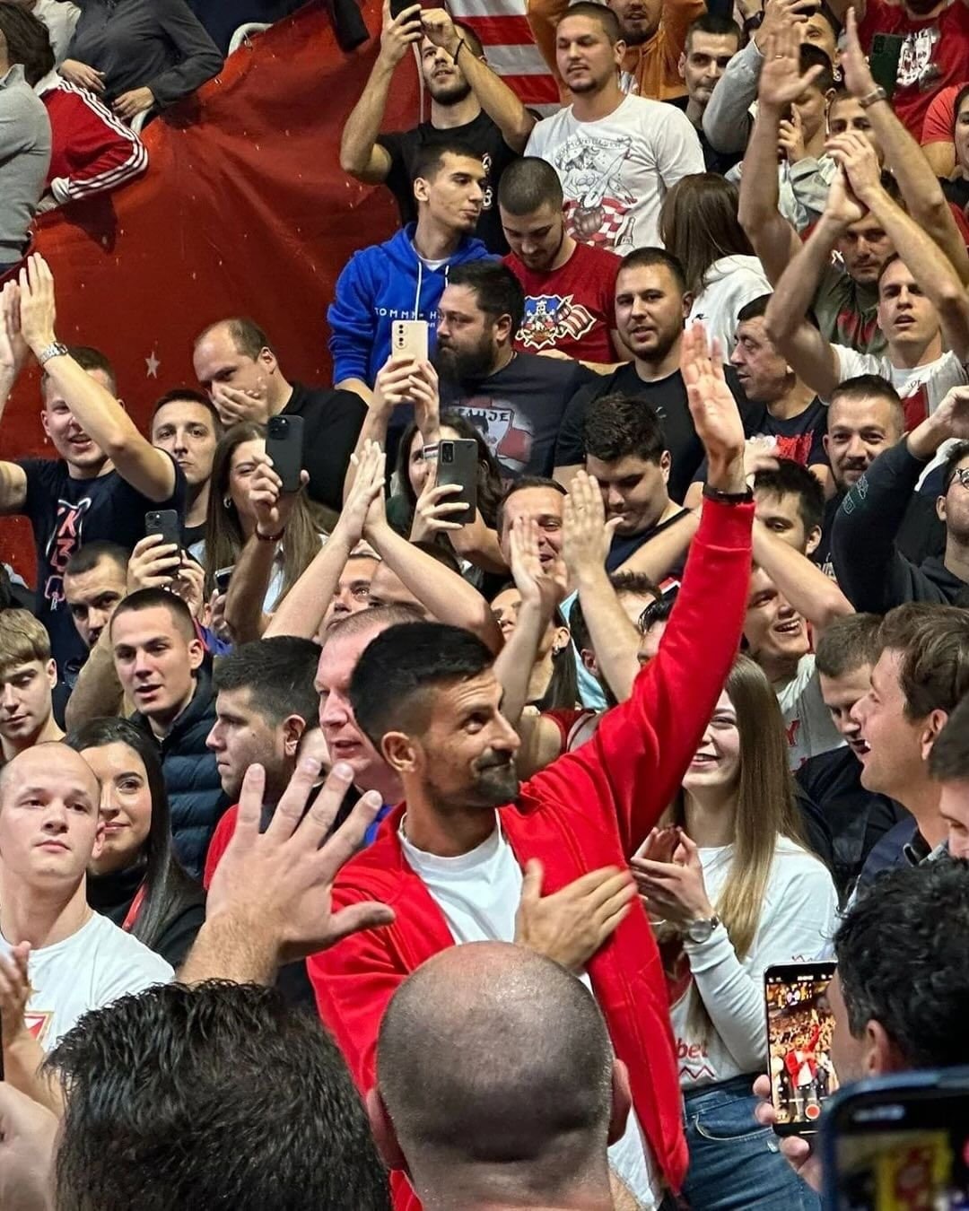 前一天去看了巴塞罗那和贝尔格莱德红星的欧冠比赛后,德约科维奇昨天又来到篮球场,观看红星队的欧洲篮球联赛的比赛。