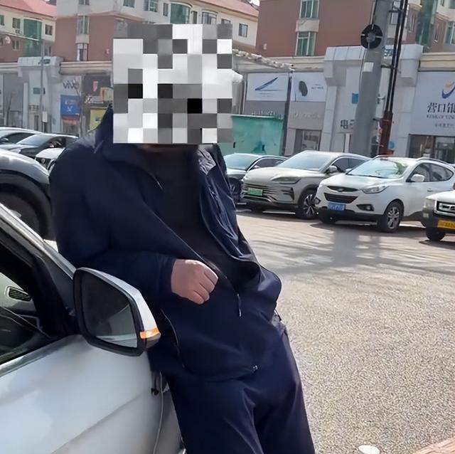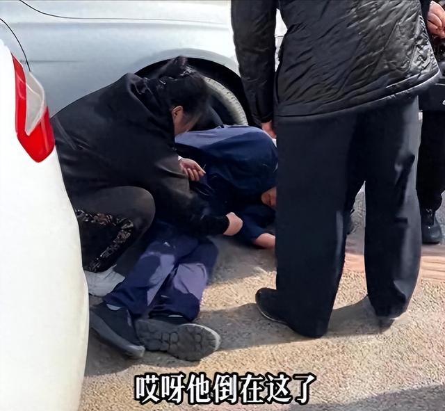 家人到来之后,大爷直接从原本的斜靠着车一下子变成了不会动的模样,瘫坐在地上。