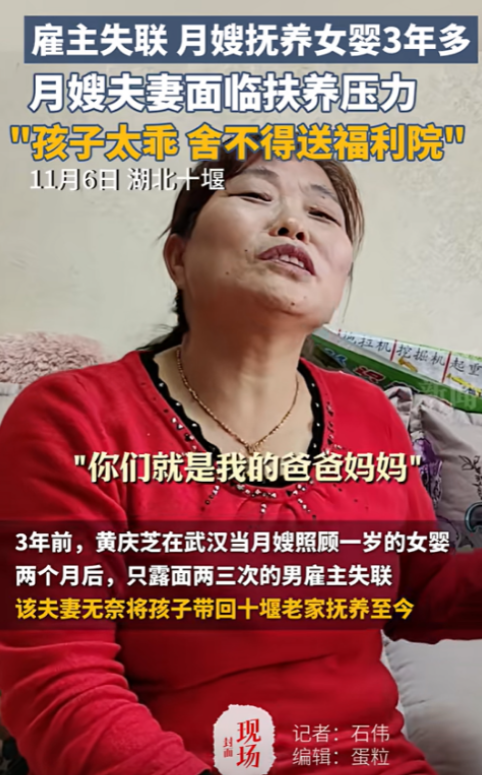 湖北十堰,50岁女子做月嫂时,雇主失联,女子只好带着1岁的女婴回老家抚养,3年