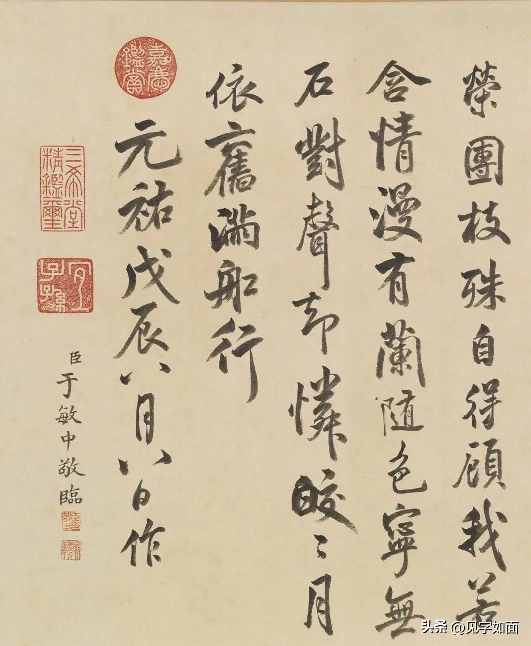 清朝的这些大臣,不只是会写馆阁体,其实,他们的行书也有很厉害的。 今天,向你推荐的,就是于敏中行书临米芾《苕溪诗卷》。 于敏中,江苏金坛(今属常州)人,乾隆朝汉臣首揆执政最久者,担任四库全书正总裁,也是久负盛名的书法家和学者。他博学多才,精通汉、满、蒙、梵等多种文字,被誉为“学贯九流”。 而他的书法,不仅楷书厉害,其行书也颇有米芾意趣。这件临习作品,足见其功底之深厚。