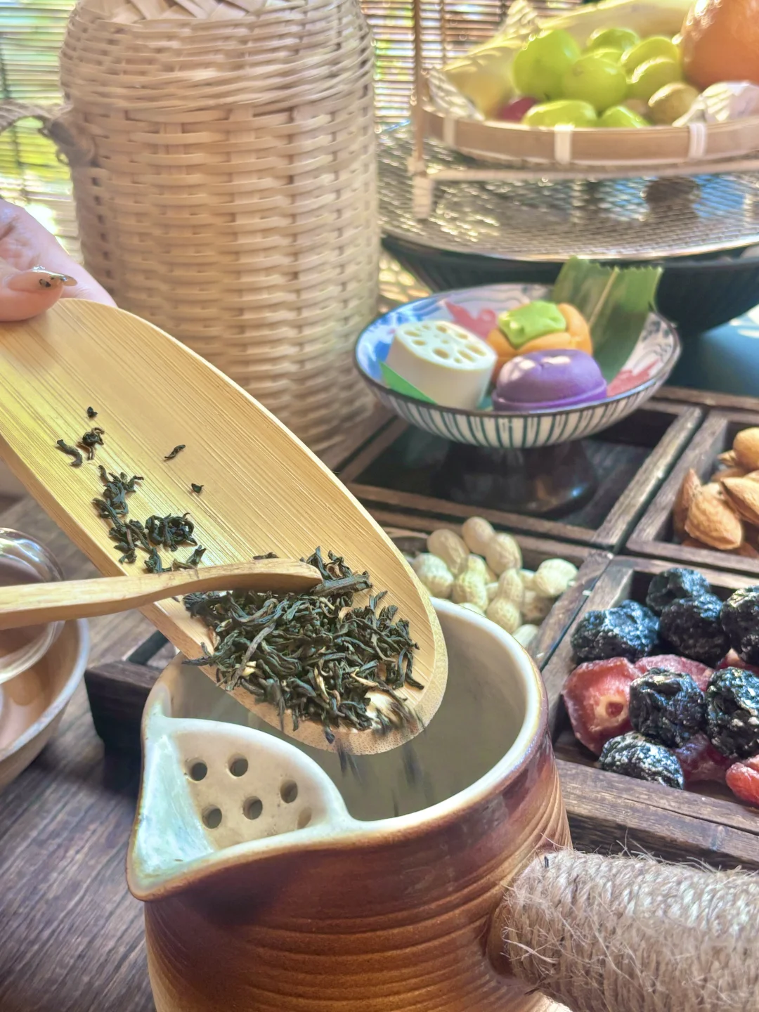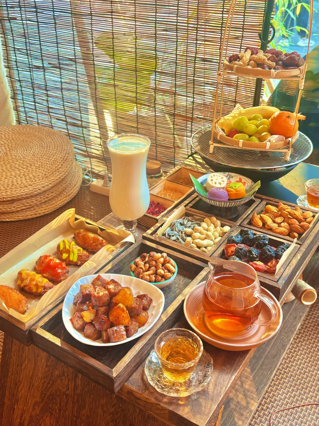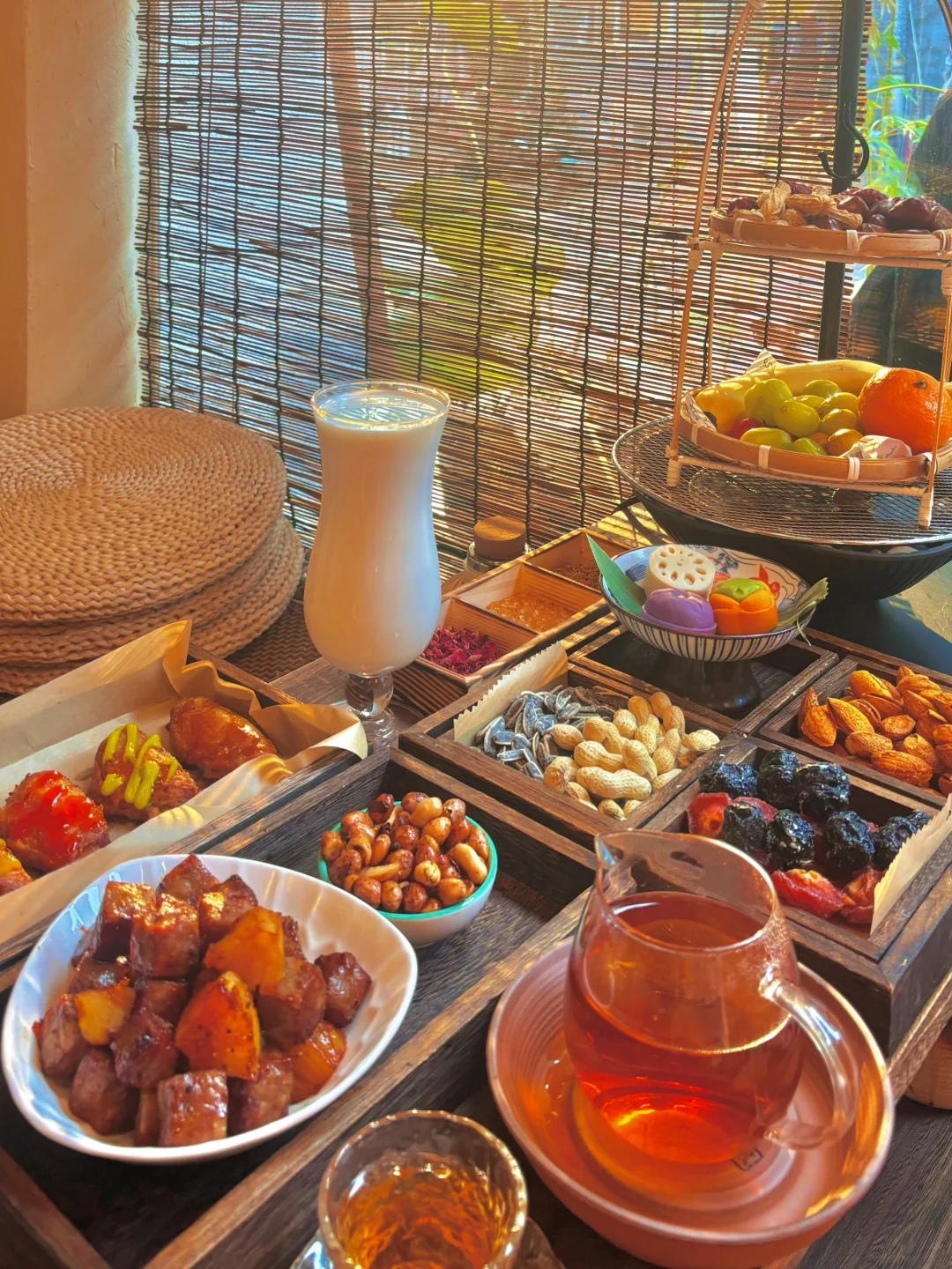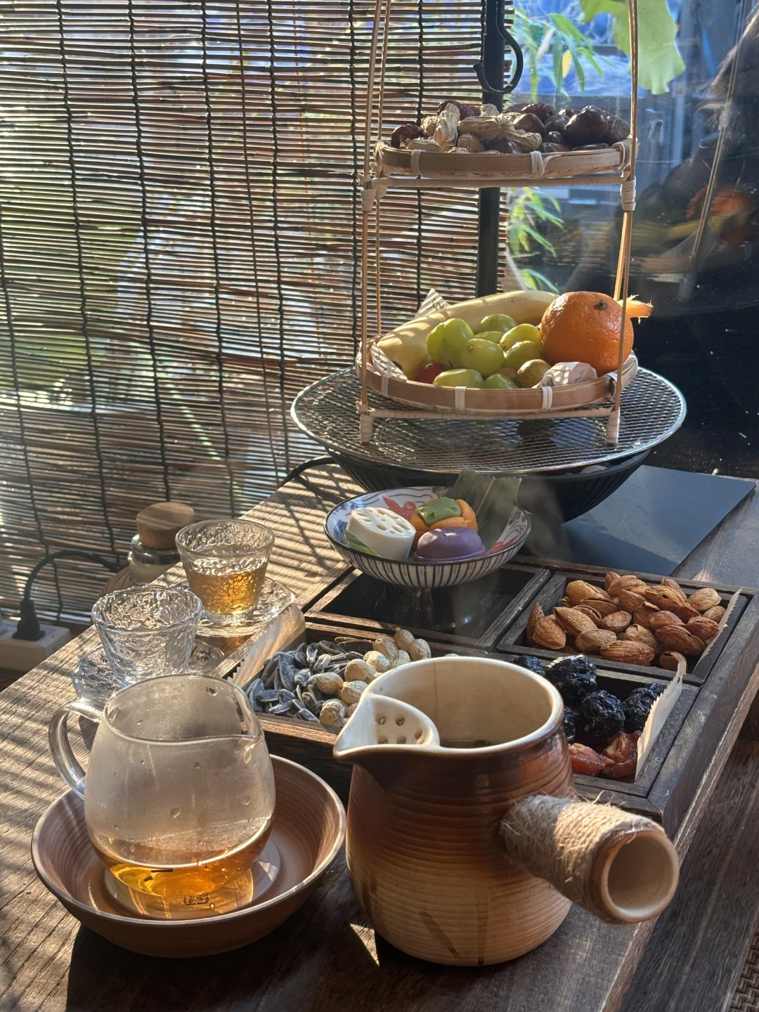 🍵煮茶,茶不会很浓,边煮茶边把水果和干果放在小暖炉周围烘烤,真的太惬意了