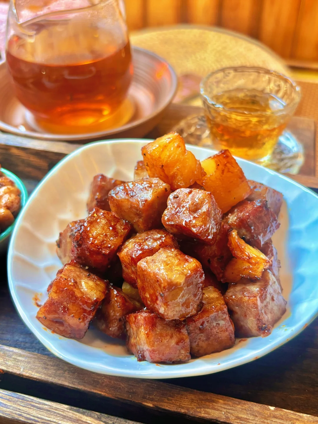 雪花牛肉粒和菠萝,牛肉粒鲜嫩多汁,菠萝酸甜适中,分量也不算少,很推荐