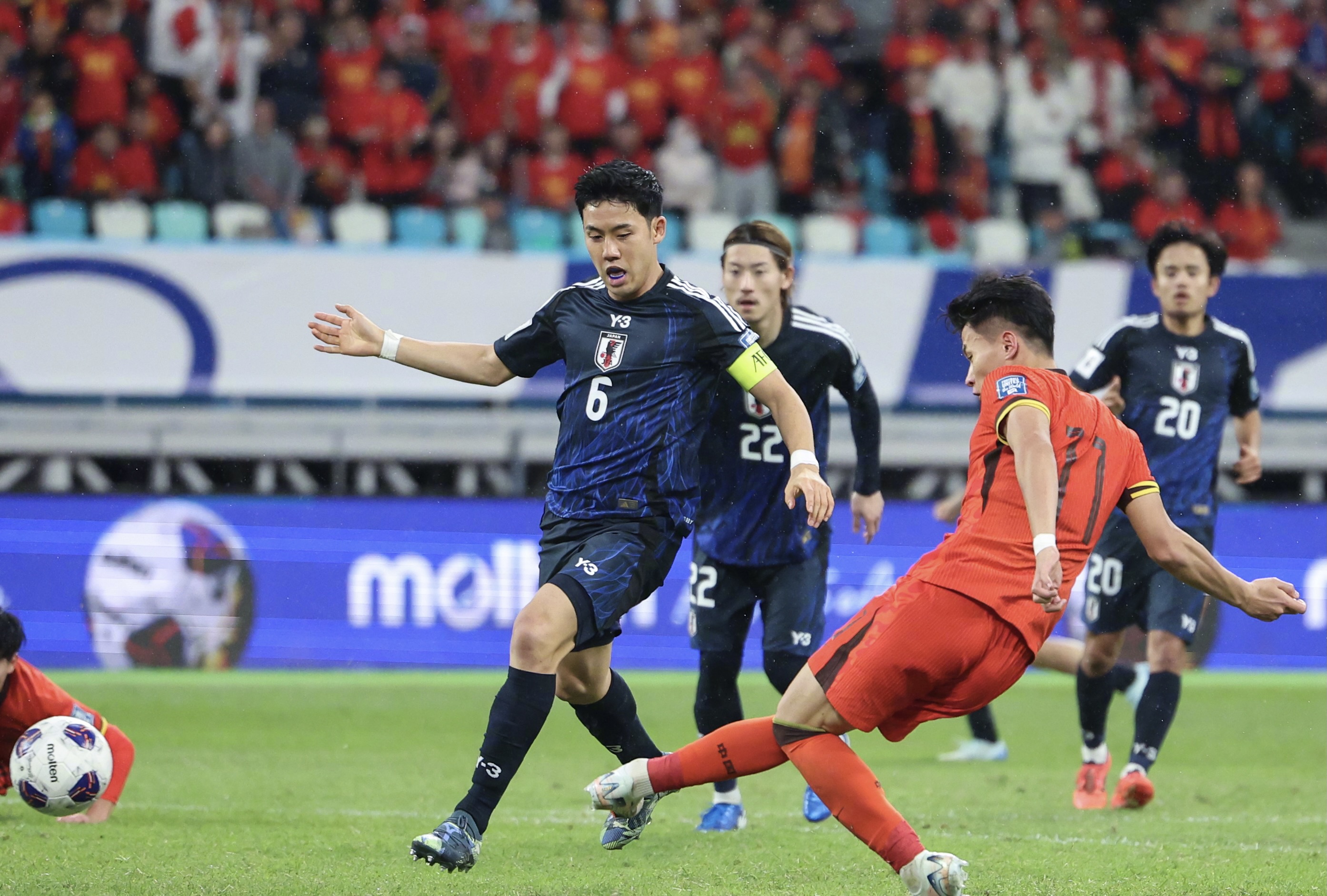 世预赛18强赛第6轮,国足1-3不敌日本,主客场两轮比赛合计丢了10个球,两回合比分1-10,这足以体现中国足球和日本足球之间的巨大差距,国足是亚洲三流,而日本男足是世界顶级强队。