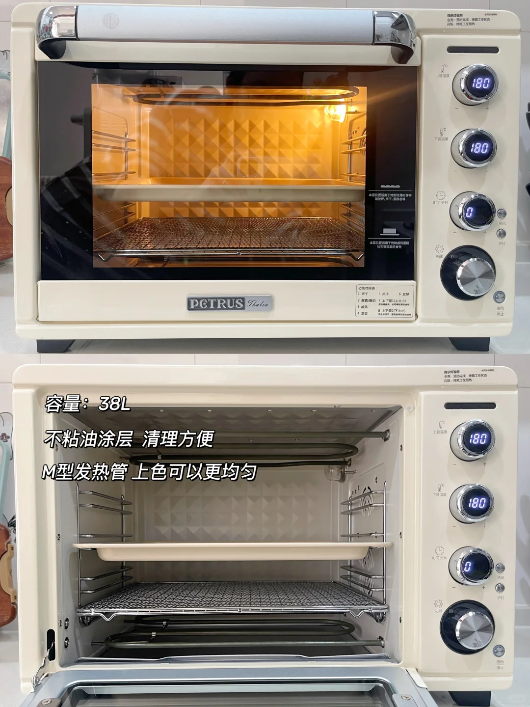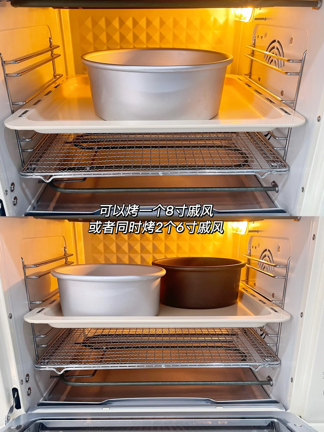 ①选容量:35L以上的, 对于家庭来说足够(可以入1个8寸戚风,或者2个6寸戚风同时烤,2个吐司盒)