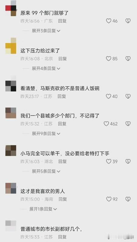 我的天! 马斯克要裁掉一大堆美国公务员! 77%啊,这可不是小数目! 你班里100个同学,一下子走了77个,教室空荡荡的,是不是很吓人?美国政府现在也差不多是这感觉。 据说,400多个部门要关掉300多个,好多公务员要回家了。 这消息一出,网上都炸了! 大家都在讨论,以后办事会不会更麻烦了?要知道,很多事情都是公务员在做的,比如发护照、修路、管学校等等。 他们要是没了,谁来干这些活儿? 有人说,马斯克这是想让政府“减肥”,提高效率。 政府部门太多,办事效率低,就像一个大胖子跑不动路。 裁掉一些人,轻装上阵,说不定还能跑得更快。 也有人担心,裁掉这么多人,会不会影响政府的服务质量?本来办事就慢,现在人更少了,岂不是要等更久? 还有人说,马斯克这是在搞“私有化”。 他想把政府的事情交给私人公司去做,就像他自己的特斯拉和SpaceX一样。 这样一来,政府就能省钱,还能提高效率。 但是,政府的事情和公司的事情不一样,政府要为所有人服务,公司只要为自己的客户服务。 如果把政府的事情交给公司去做,会不会损害公众的利益? 这就像去医院看病,公立医院和私立医院感觉就不一样。 公立医院虽然人多,等的时间长,但收费比较低,大家都能看得起病。 私立医院服务好,环境好,但收费贵,不是每个人都看得起。 政府也一样,要保证每个人都能享受到基本的公共服务,不能只顾着省钱和效率。 马斯克这次的举动,就像一颗炸弹,扔进了美国政坛。 未来会怎么样,谁也说不准。 有人说,他会让美国“再次伟大”;也有人说,他这是在瞎胡闹。 时间会告诉我们答案。 反正现在,很多公务员估计都睡不着觉了,担心自己会不会丢了饭碗。 想想也是,一下子这么多人失业,可不是闹着玩的。 这对美国经济的影响,也很难说。 也许能刺激私营部门创造更多工作岗位, 也许会让更多人没工作,造成社会动荡。 总之, 这件事的影响太大了, 咱们就等着瞧吧!