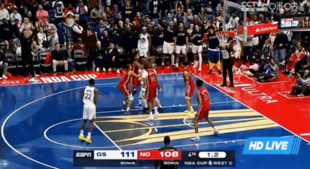 鹈鹕也是够命硬的,18秒快速执行了一个三分球,运气也不错,颠了三下都能颠进去。