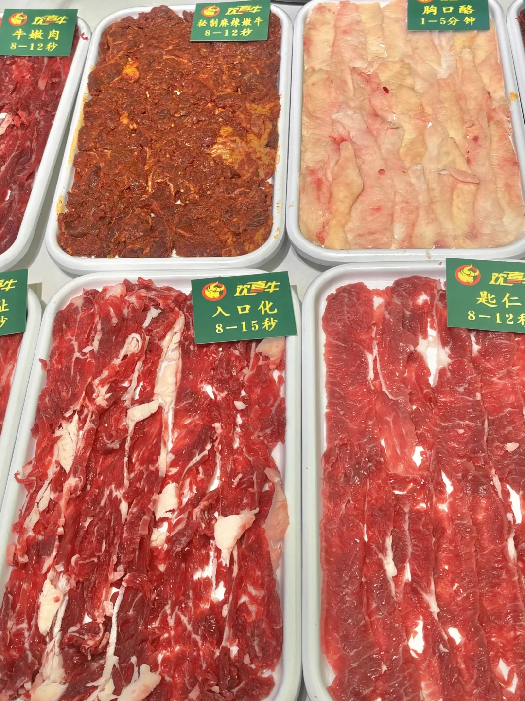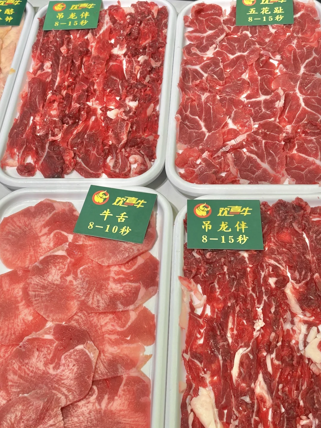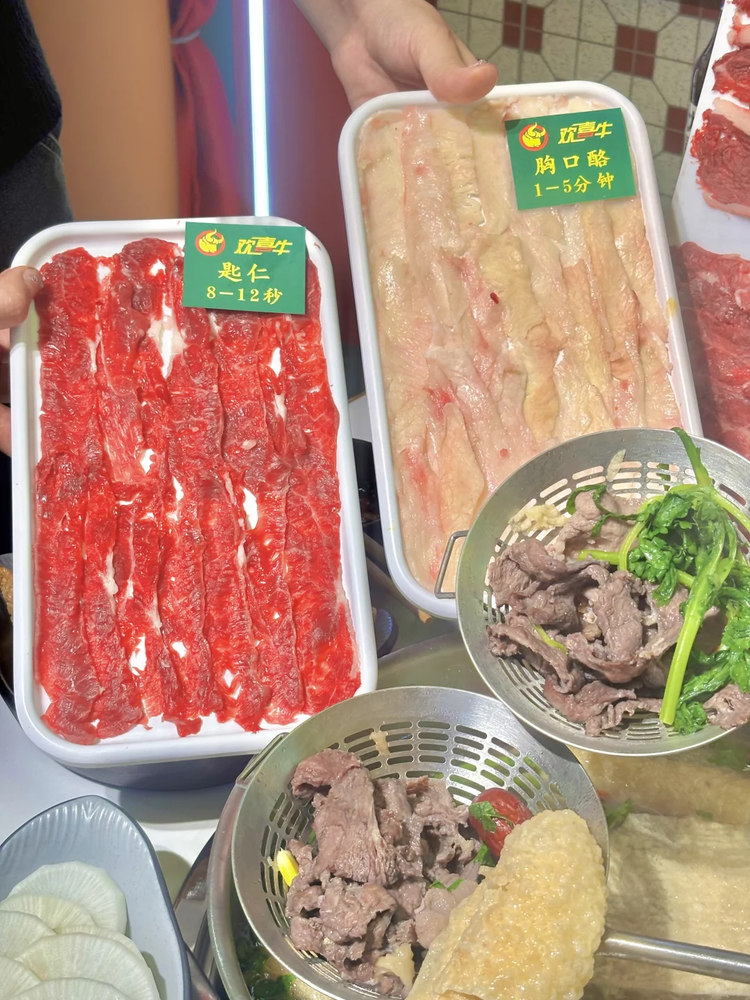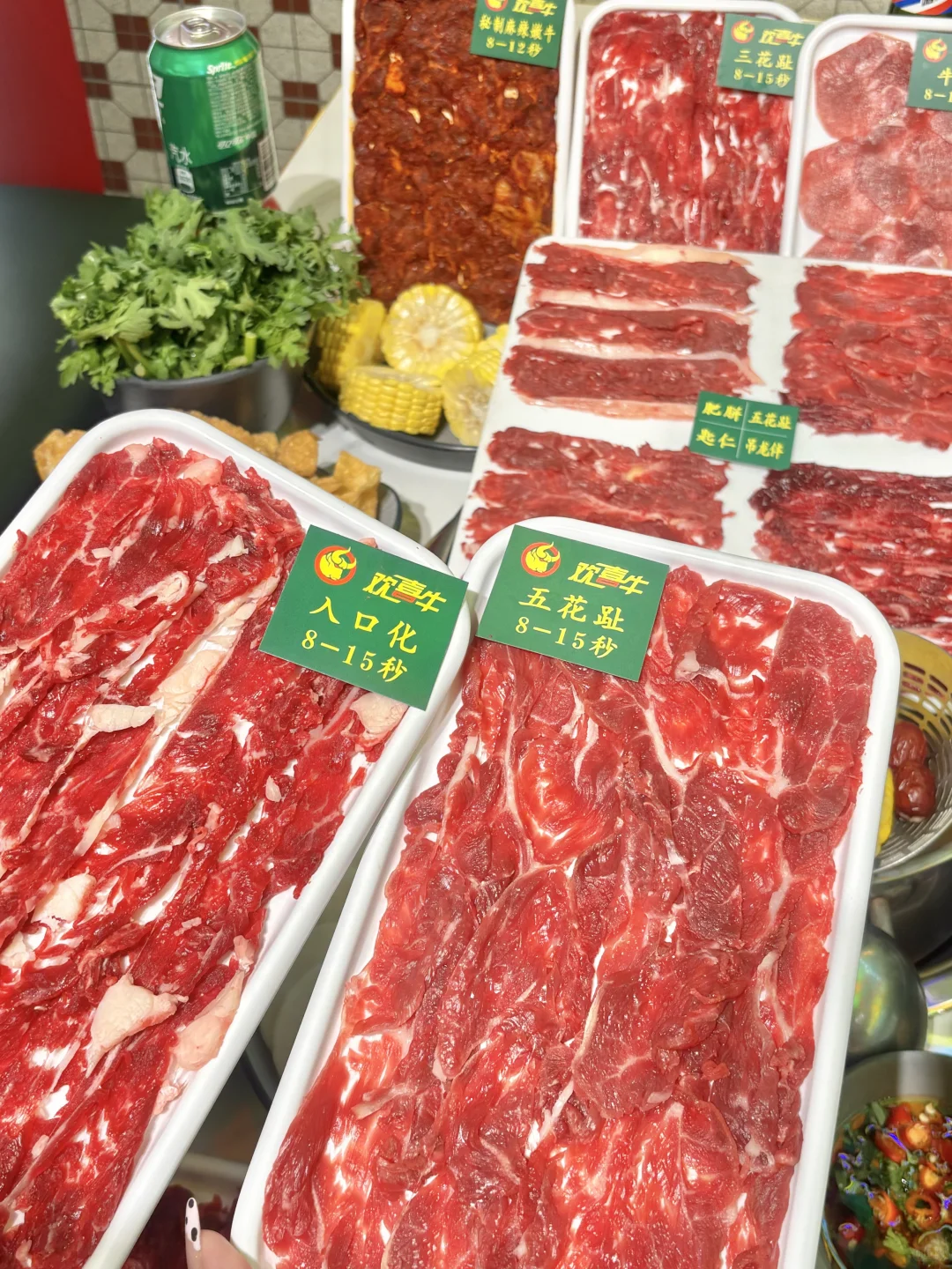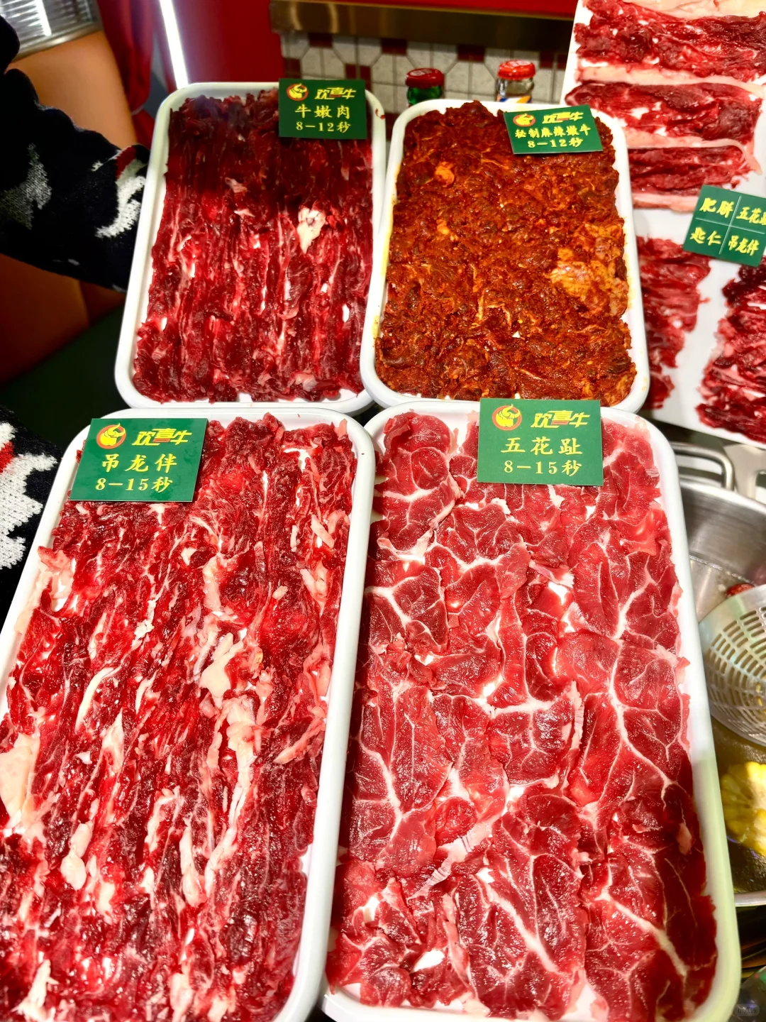 🏡店名:欢喜牛潮汕牛肉火锅 📍地址:吾悦6层 - 人均几十块!就能吃到上好品质的牛肉,这你都不心动吗😭肉明档现切,纹路清晰,品质有保障!!不隔夜,安全又卫生!肉🥩在盘子上立盘也不会掉!👍🏻 🩵点单推荐💙 三花趾✅五花趾✅ 入口化✅胸口酪✅ 匙仁 ✅吊龙伴✅ ……所有的肉在盘子上都会标注涮的时间,非常贴心! 现在还有50代100代金券(单次可用4张 ,锅底小料酒水除外)! 还没吃过的宝子真的要快来吃这个牛肉锅天花板!!🔥