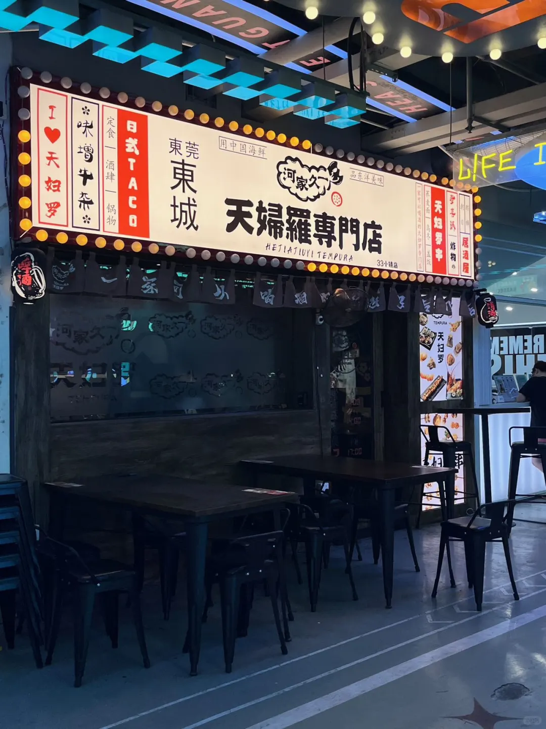 🏡河家久一天妇罗(33小镇店) 📍东城街道工业路1号33小镇19栋112室(33小镇店) 📍南城街道香园路20号4栋103室(769创意园店)