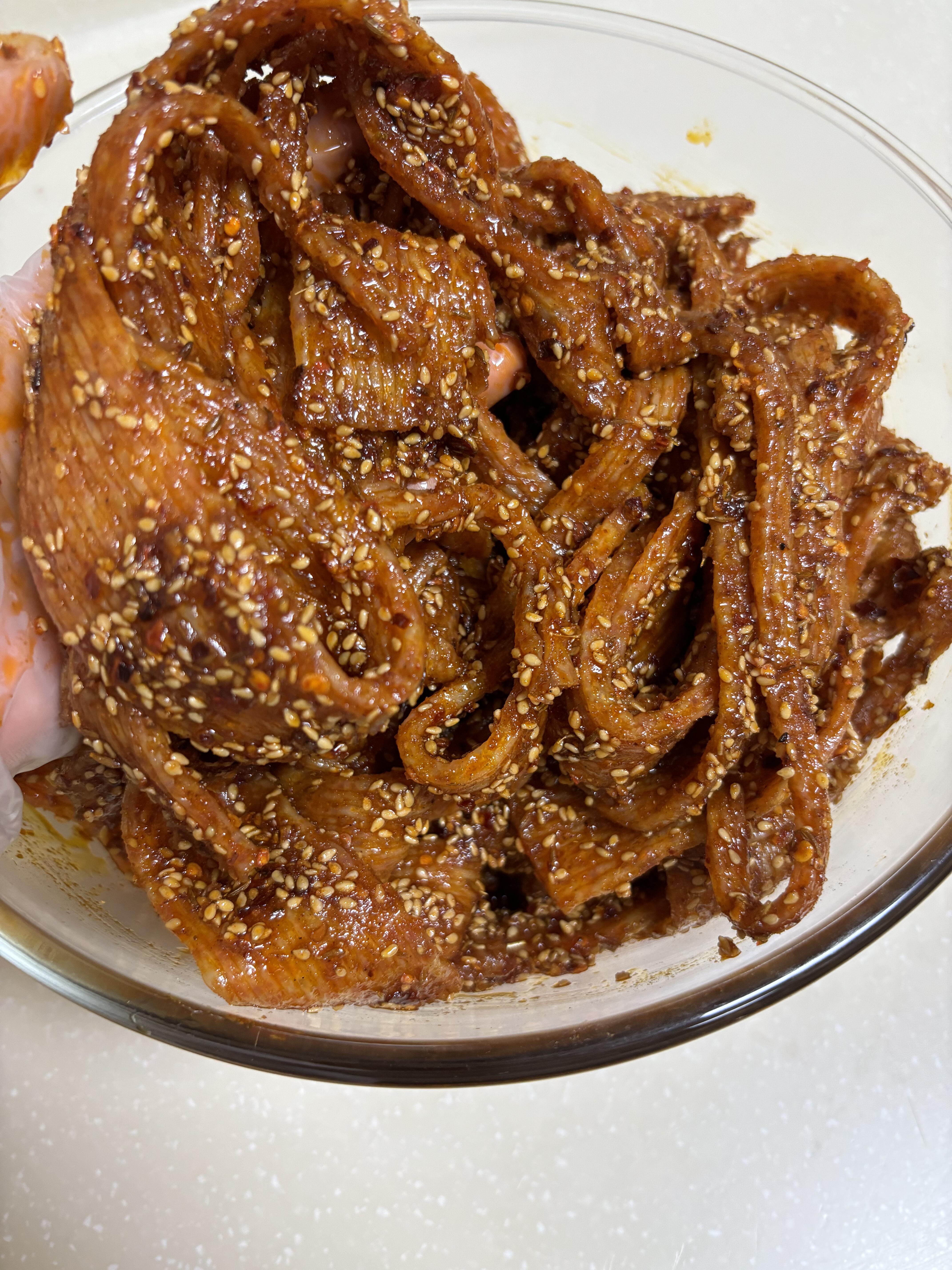 私房爆款辣条!所有细节点都教给你 小伙伴们大家晚上好,今天教大家做中辣版的牛筋面辣条,这款巨好吃,我把牛筋面辣条不变硬的方法告诉你,这一篇细节点满满,你通篇看完后还有不明白的地方在评论区问。 注意点:牛筋面我用3cm宽的,因为宽的比窄的好操作,不繁琐,并且宽的可以撕成细的。