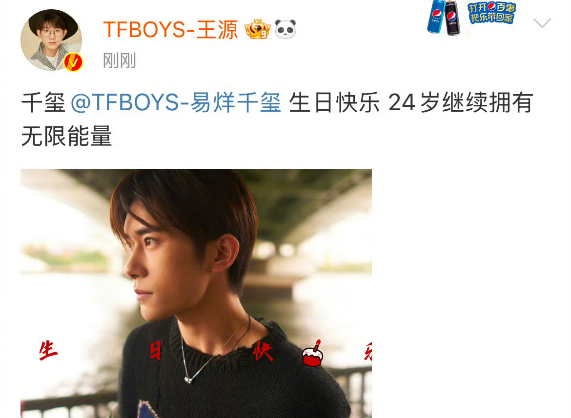 王俊凯王源给易烊千玺卡零点的祝福准时到达,王俊凯和王源都p了红色蛋糕!