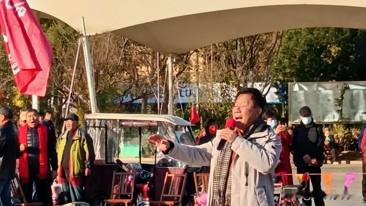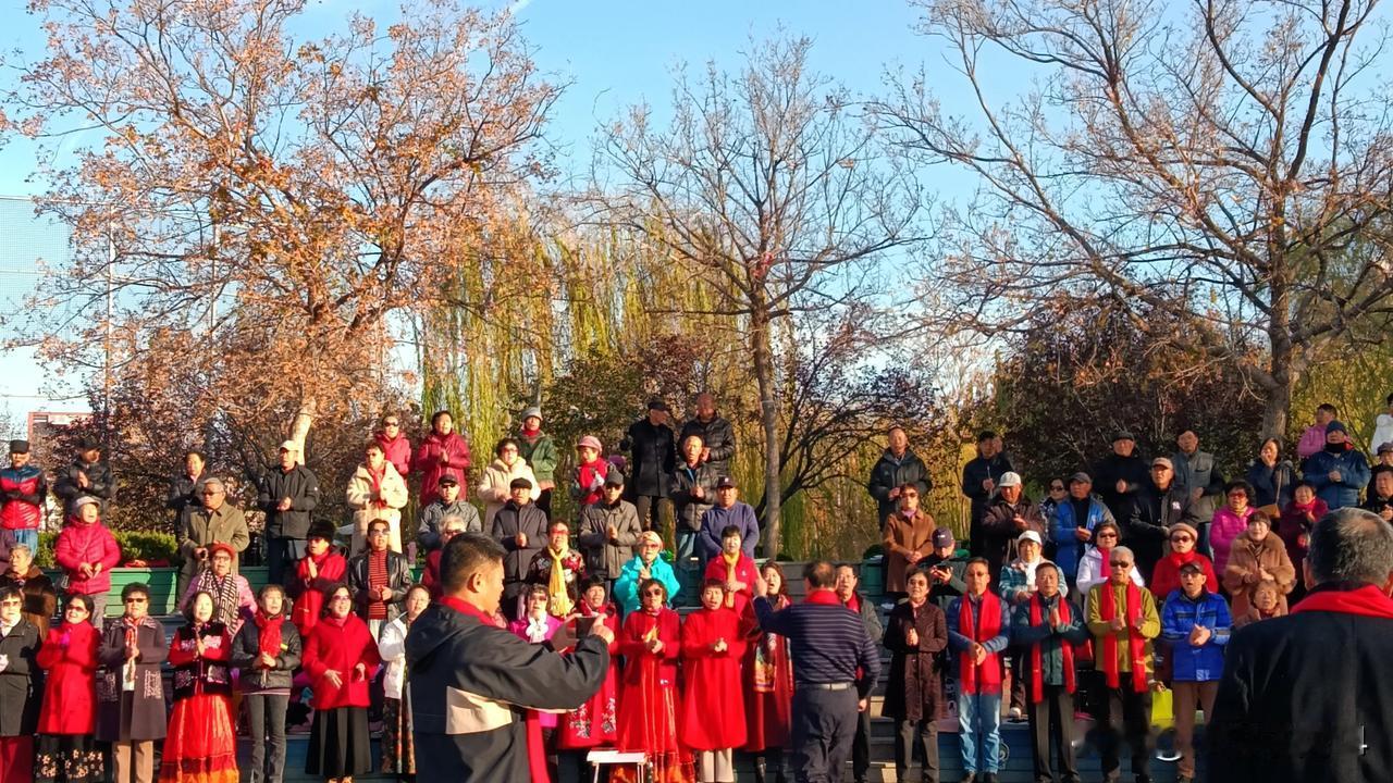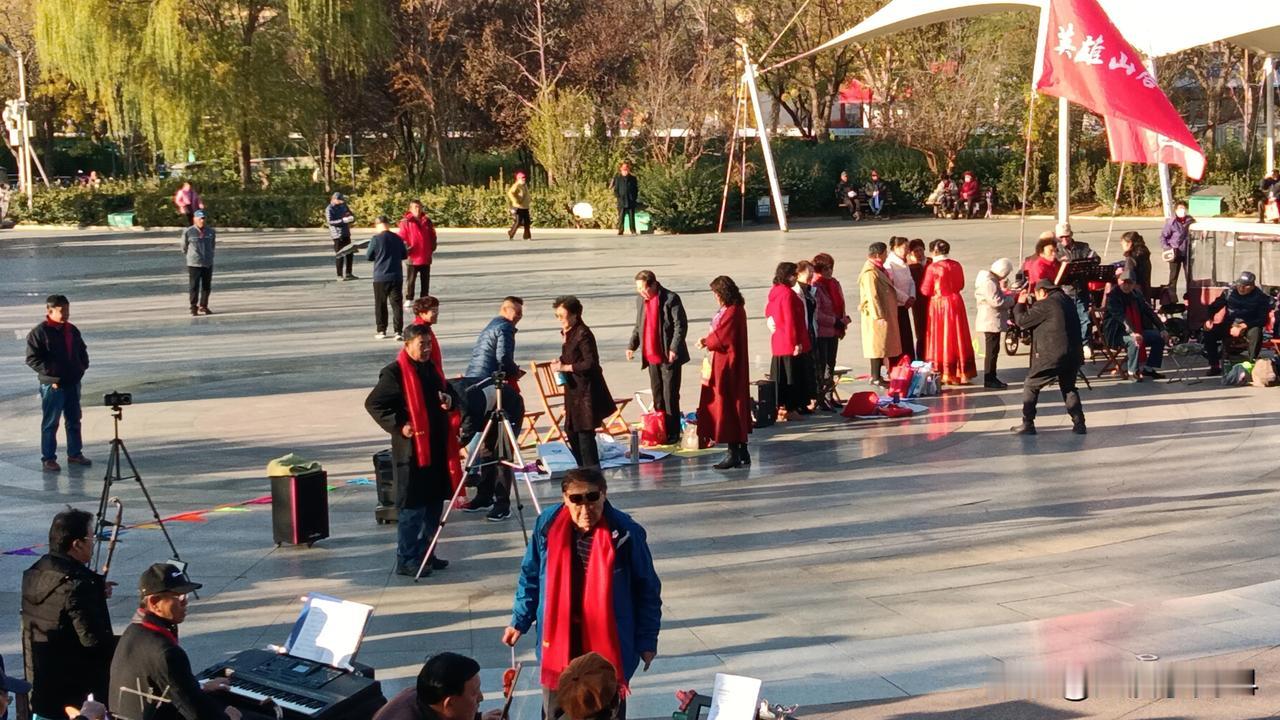 晓风凛冽月色稀, 周末广场已升旗。 寒霜难扰圆歌梦, 花甲老人争伏栃。 又到周末,早晨起来准备一番就来到了大众广场。依然是跚跚来迟,广场上已经是人头攒动。真的是打心眼里敬佩这些散居泉城四面八方的老人,为了弘扬正能量,让红歌经久不衰,不辞辛苦地用自己的行动来为英雄山合唱团纳喊助威。红歌的力量是无穷的,既便是寒冷的冬天,也让老百姓的心里象有阳光一样温暖和煦。《图文原创》