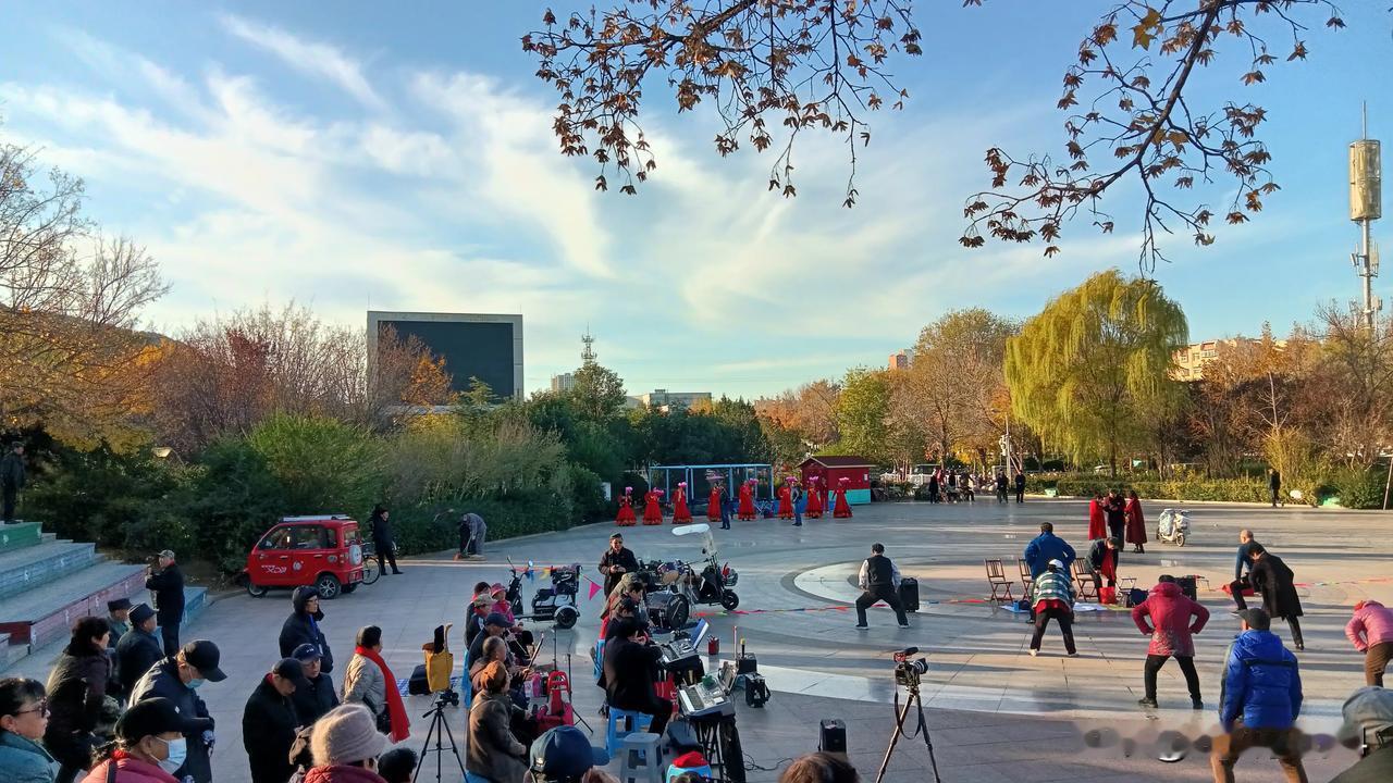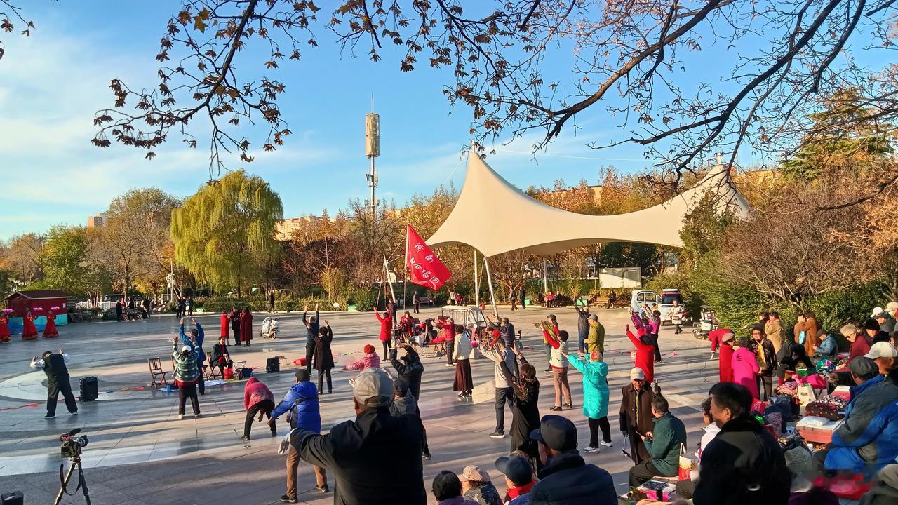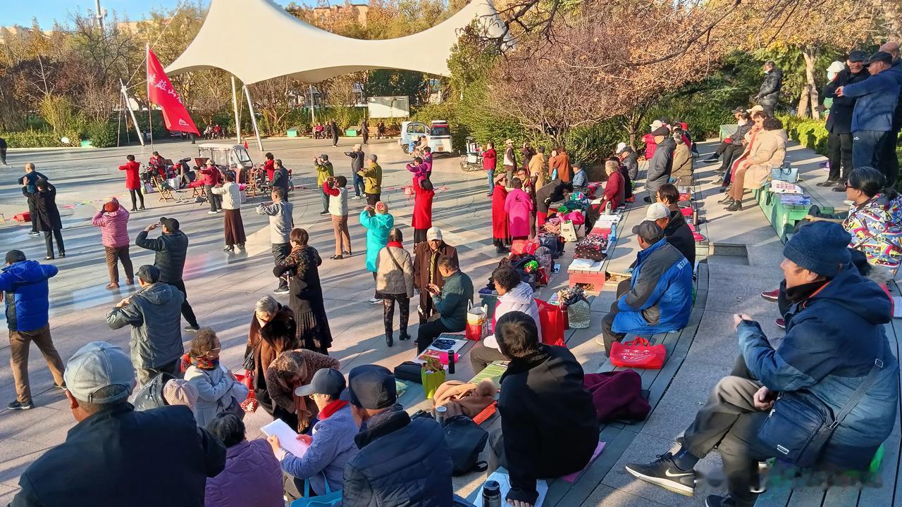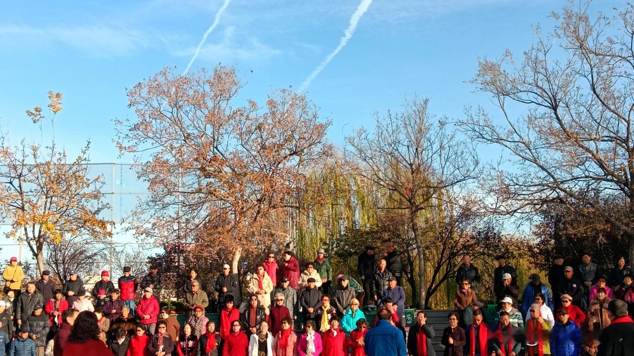 晓风凛冽月色稀, 周末广场已升旗。 寒霜难扰圆歌梦, 花甲老人争伏栃。 又到周末,早晨起来准备一番就来到了大众广场。依然是跚跚来迟,广场上已经是人头攒动。真的是打心眼里敬佩这些散居泉城四面八方的老人,为了弘扬正能量,让红歌经久不衰,不辞辛苦地用自己的行动来为英雄山合唱团纳喊助威。红歌的力量是无穷的,既便是寒冷的冬天,也让老百姓的心里象有阳光一样温暖和煦。《图文原创》